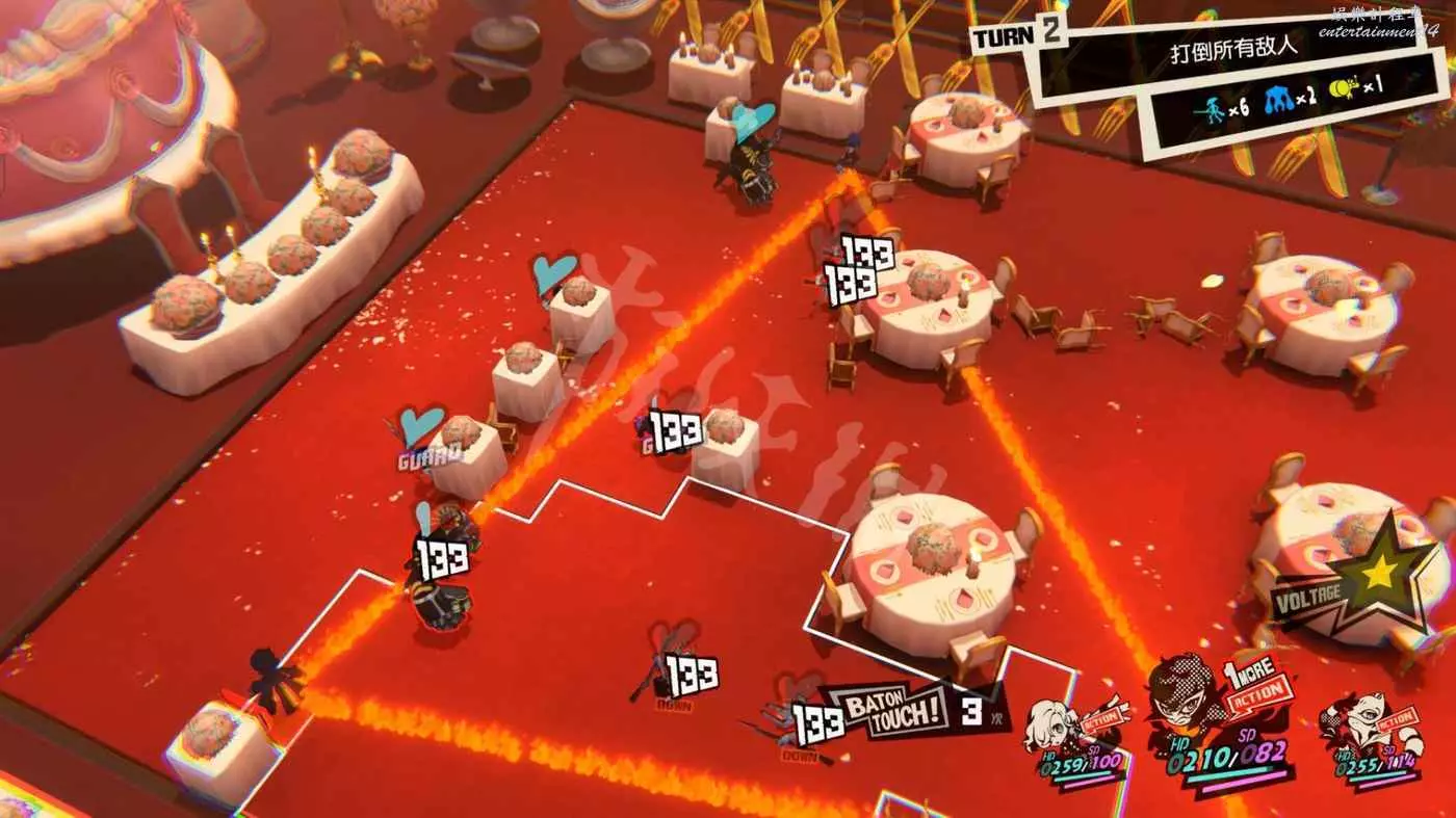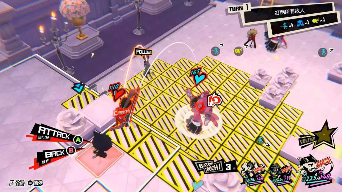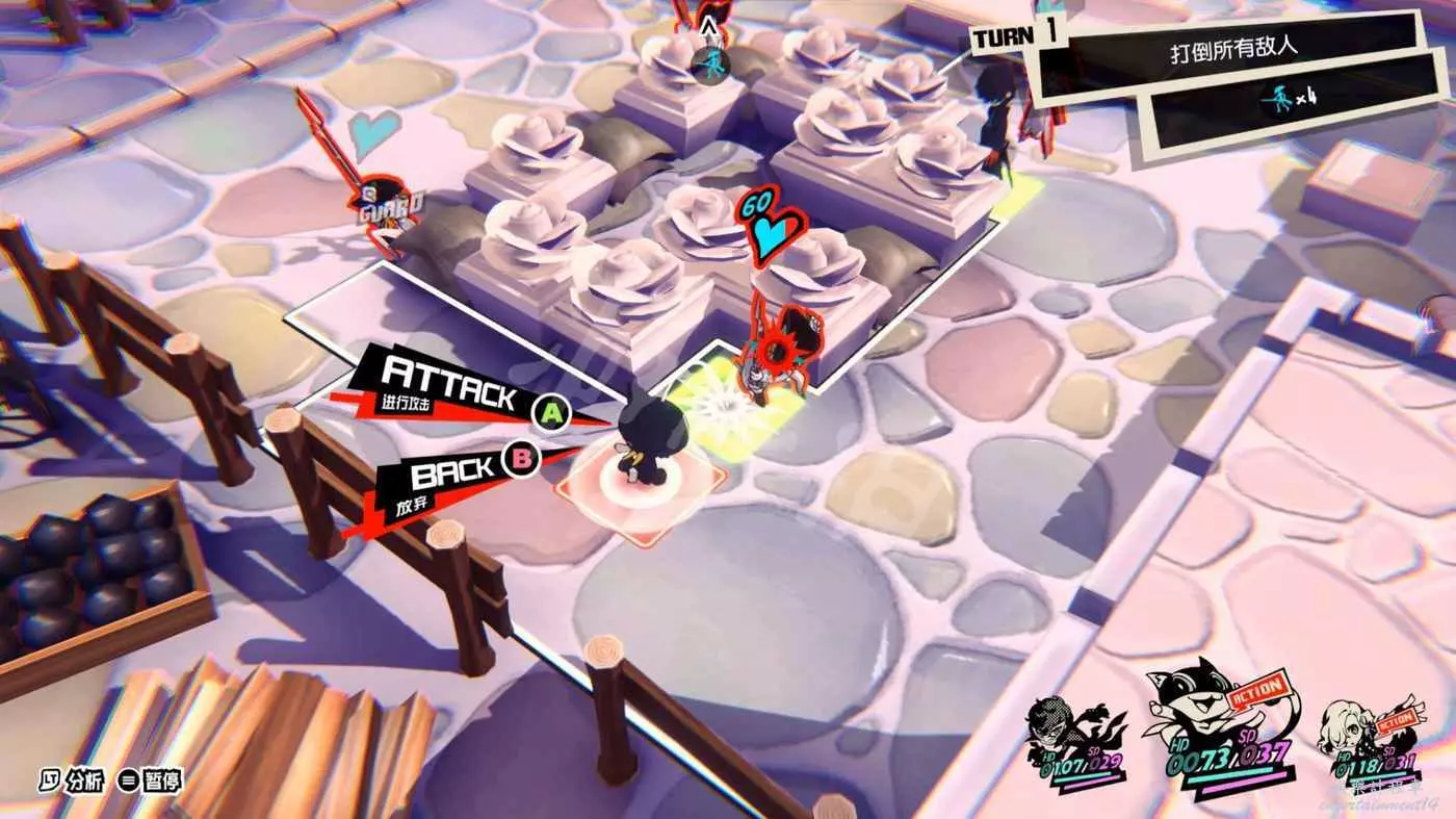 雖然沒有打倒全部敵人的要求,不過路上的敵人不清理掉的話還是比較麻煩的,第一波怪有4個,儘量打到一起用JOKER的AOE解決。
