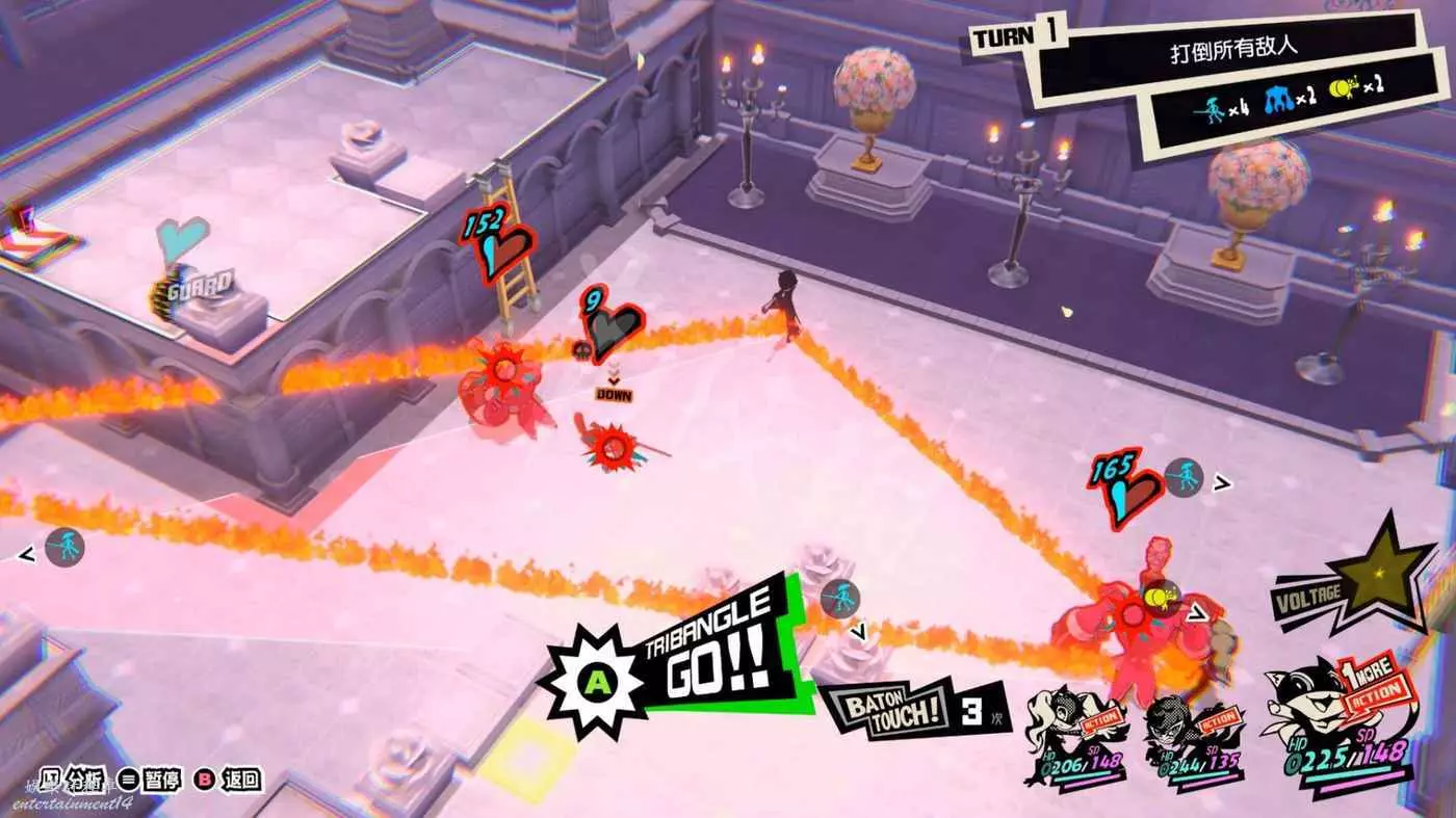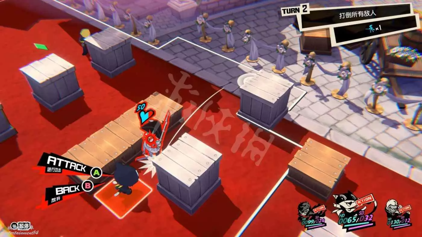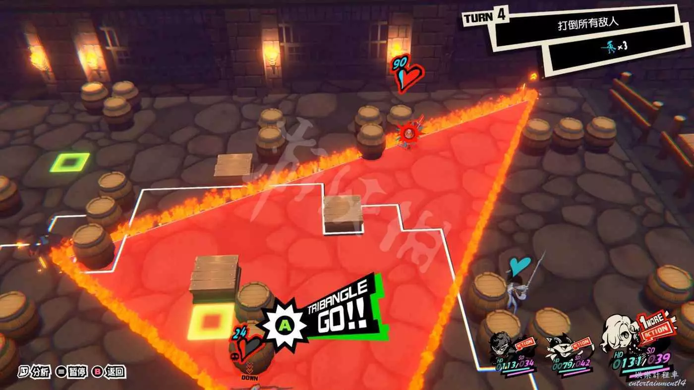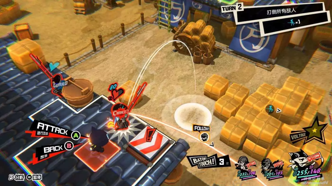 雖然沒有打倒全部敵人的要求,不過路上的敵人不清理掉的話還是比較麻煩的,第一波怪有4個,儘量打到一起用JOKER的AOE解決。