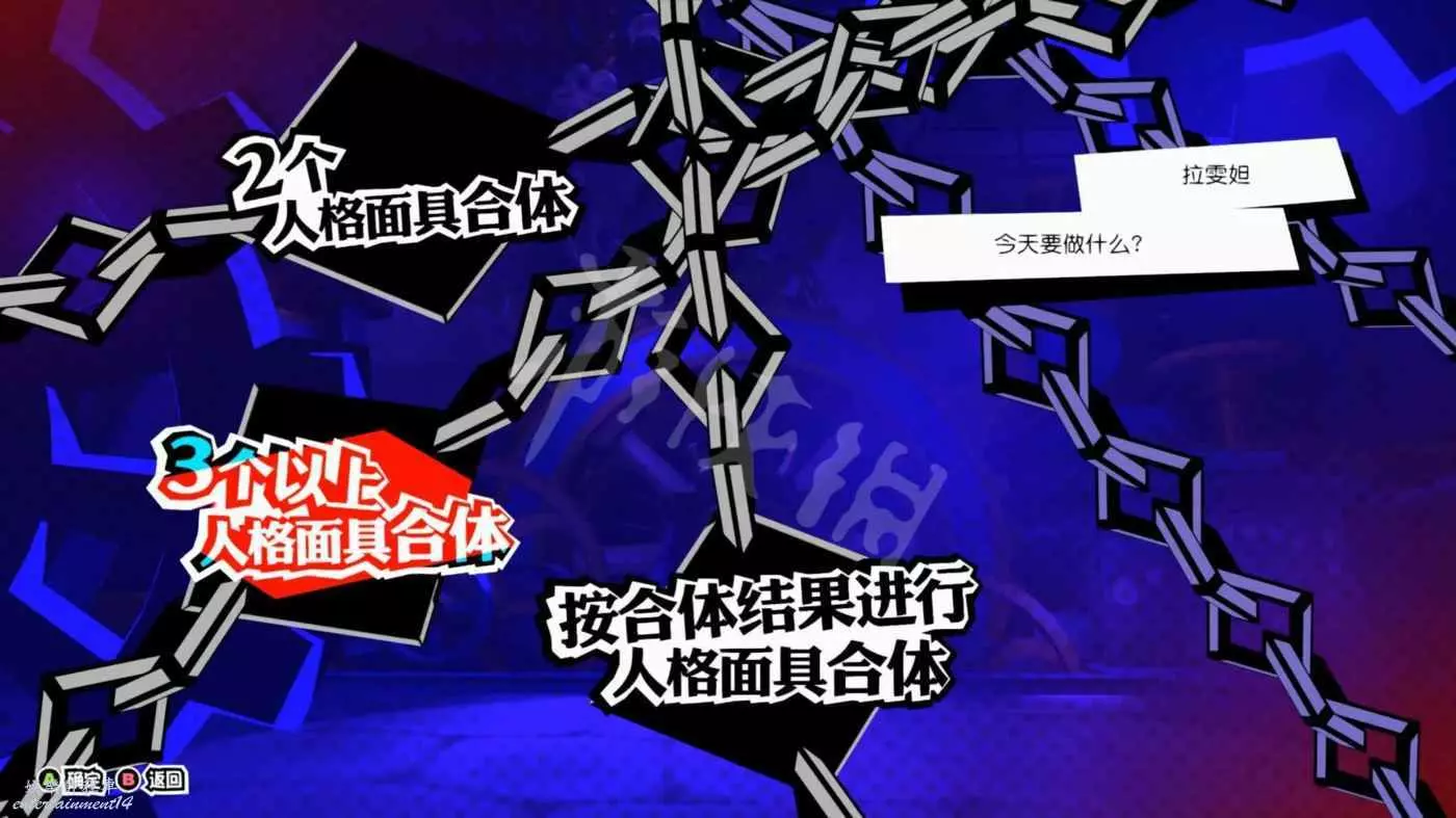副人格面具的養成是遊戲中的核心玩法。在拉雯坦的天鵝絨房間中可以進行人格面具的合體、裝備等操作。
