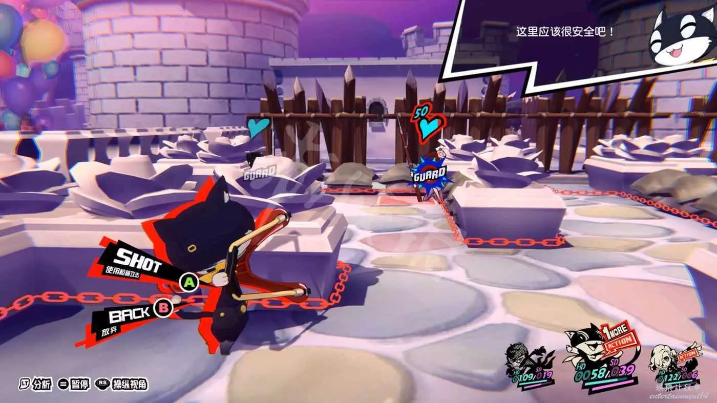 本關被洗腦的最後兩名成員——FOX和QUEEN將會登場。二人分別出現在左邊的高臺和右邊的小道。個人建議從右側小道突破。