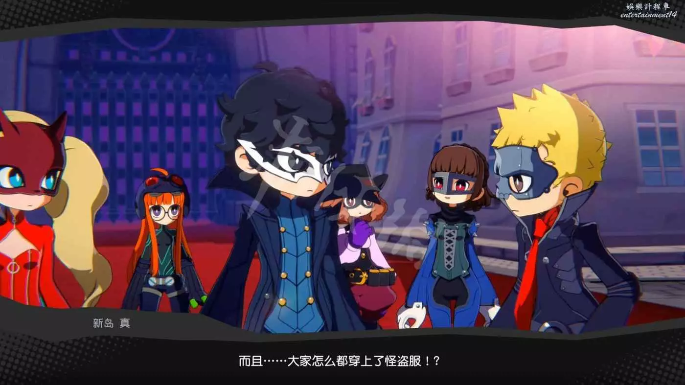 推開門後眾人來到一個 奇怪的異世界,而且驚訝地發現所有人都穿上了怪盜服。