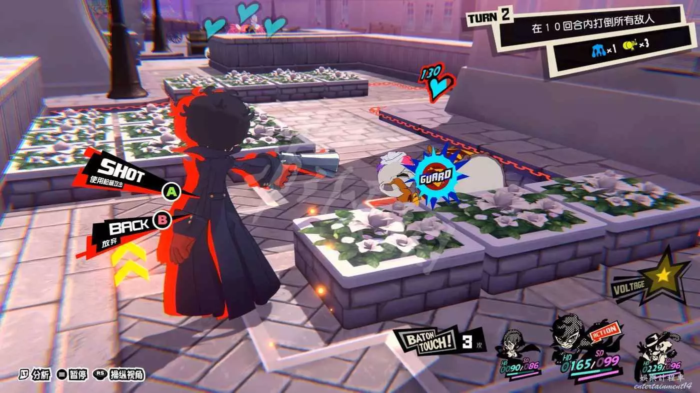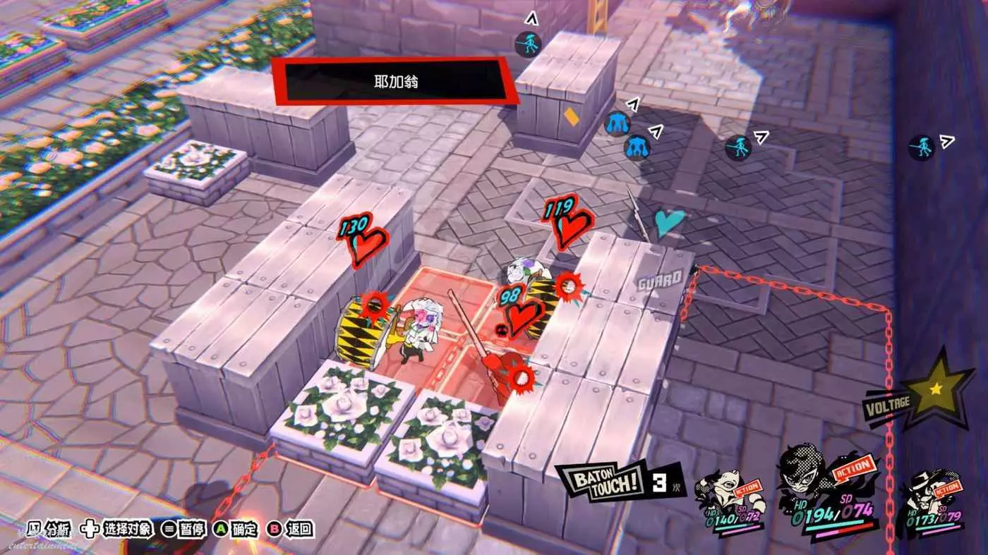 戰鬥分兩個階段,一階段開始時注意躲開花束所在的爆炸範圍。