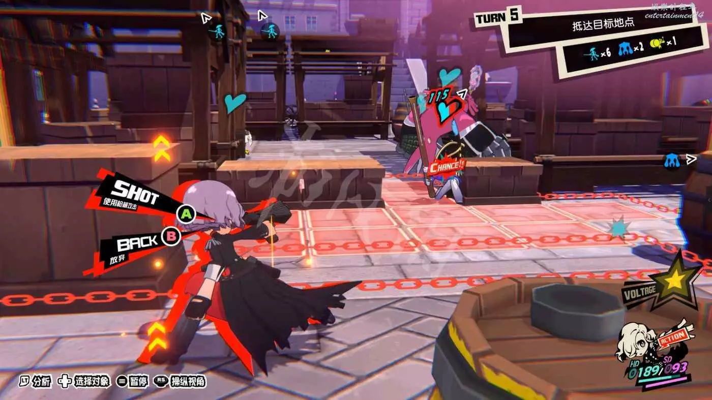 如果離Boss太近很有可能會被她的鐐銬鎖鏈強行拉到身邊,接下來一回合的行動範圍縮小,但最好還是找到一個掩體來躲避接下來的射擊。