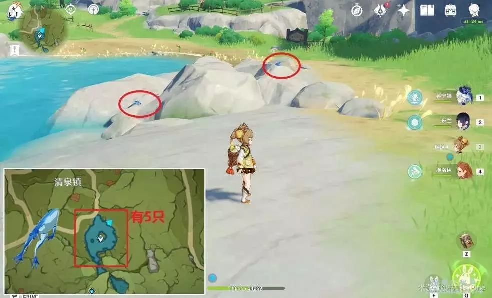 6,最後可以來到蒙德清泉鎮傳送錨點,周圍一圈有5只藍蛙可以拍攝