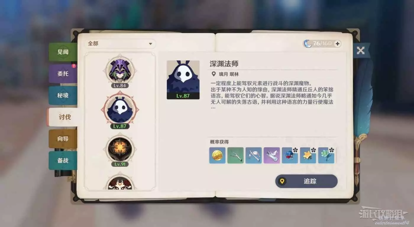 符合拍照要求的生物有:戰士/突進/木盾/冰盾/岩盾丘丘人、各元素丘丘薩滿、火/水/雷/冰深淵法師、愚人眾先遣隊·岩使遊擊兵、盜寶團·海上男兒、鍍金旅團·白日鳴雷、攻堅特化型機關、殲滅特化型機關、愚人眾·風/霜役人、冰風組曲、黯色空殼·破陣/旗令