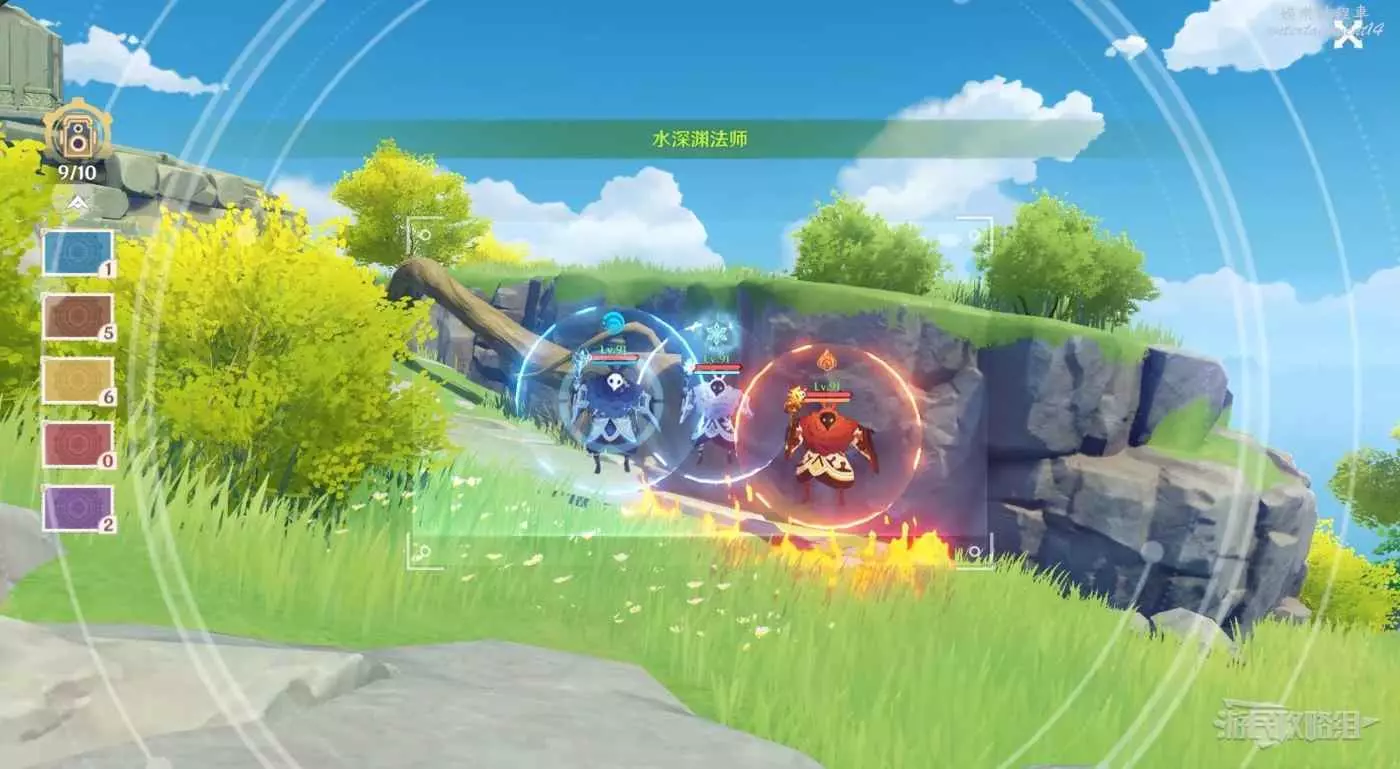拍完之後重新傳送到秘境,往東北方向走可以看到一個丘丘人據點,據點裡有1個岩盾丘丘人和1個深淵法師;繼續沿著淺灘往西北方向走,能拍到2個深淵法師、2個打手丘丘人、1個岩盾丘丘人;如果不小心打死了,繼續往北穿過石門還有2只打手丘丘人(下圖黃色路線)。