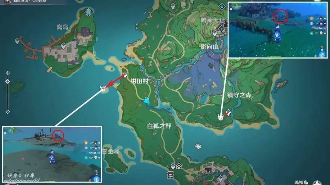 4,再補充一些點位,鳴神島東西錨點旁同樣各有2只丘丘薩滿