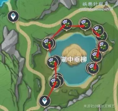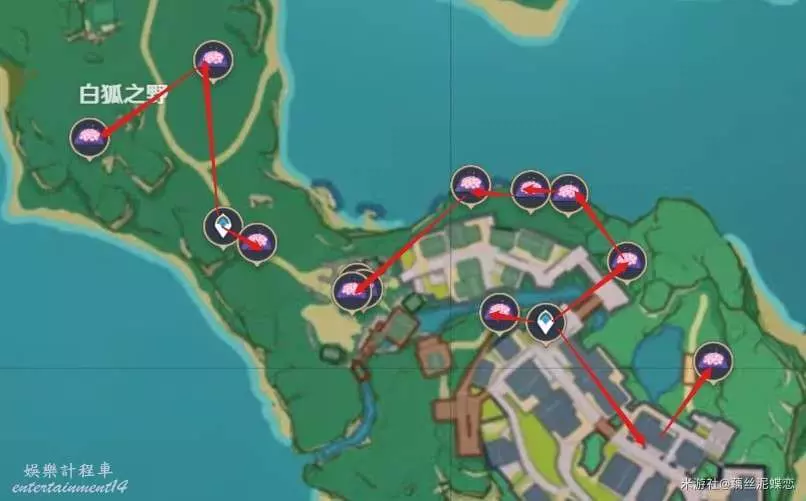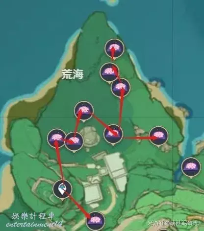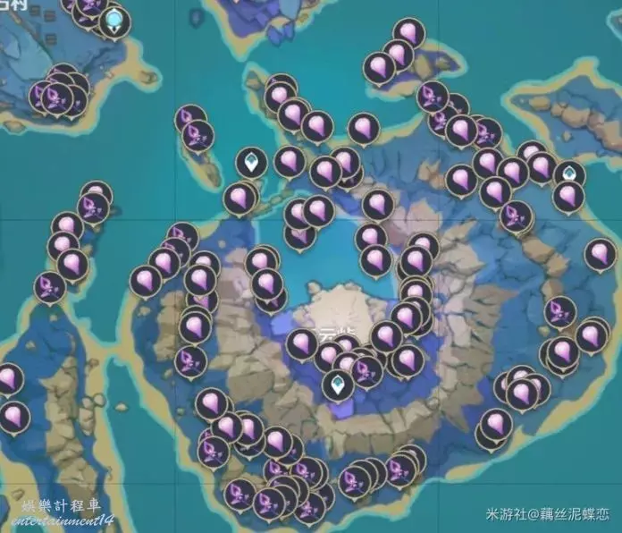 和紫晶礦一樣分佈在稻妻各地,因此為了讓大家少跑幾個地方我儘量給大家提供能夠同時拍攝這些物產的地點