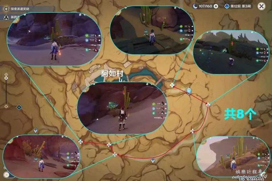 2.「赤念果」全圖數量共102個,我會在下面將全圖「赤念果」的點位元及路線圖全部發出,由於80*2=160,差8個,采兩次不夠,所以怎樣採取由各位自行斟酌。