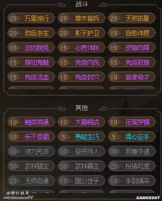 如果有剩餘的成就點數可以考慮【禦劍精通】【手腳靈活】兩種。