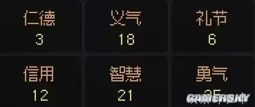 玩家在遊戲中的選擇會影響角色的個人品質,如做做壞事就會影響仁德與信用,在屬性數值到達110或-100後會增加新的特徵。