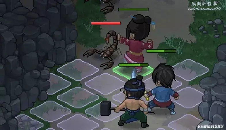 與怪物相遇後就會觸發戰鬥,戰鬥為回合制,通過上方的集氣條來決定攻擊的順序,戰鬥中會根據角色的武器、武學來決定攻擊範圍、傷害等。