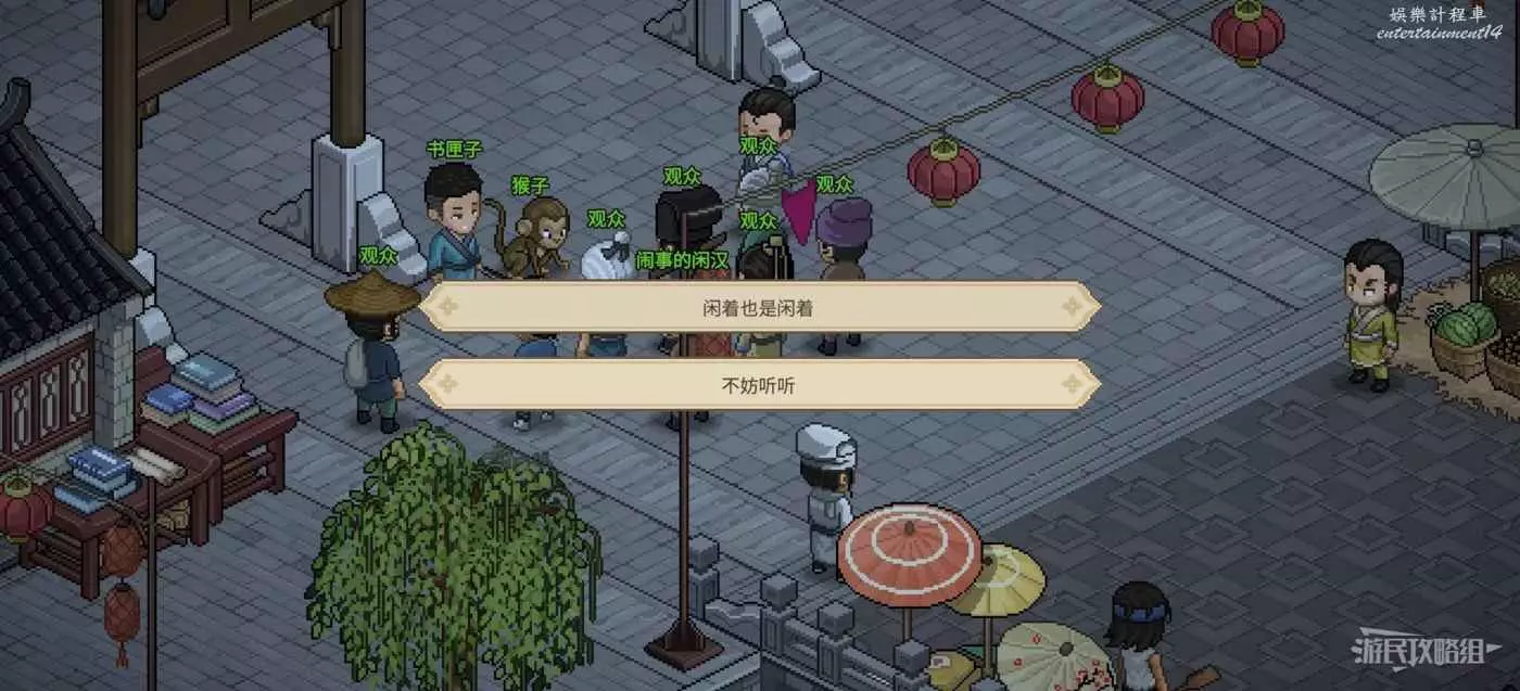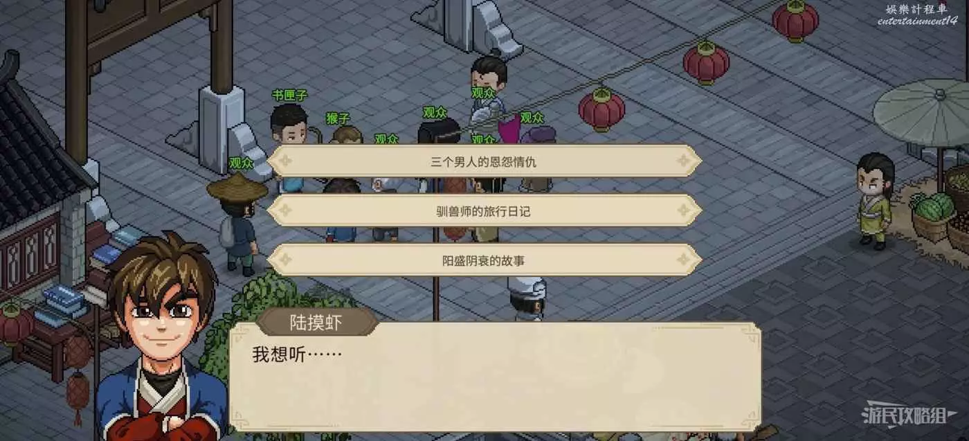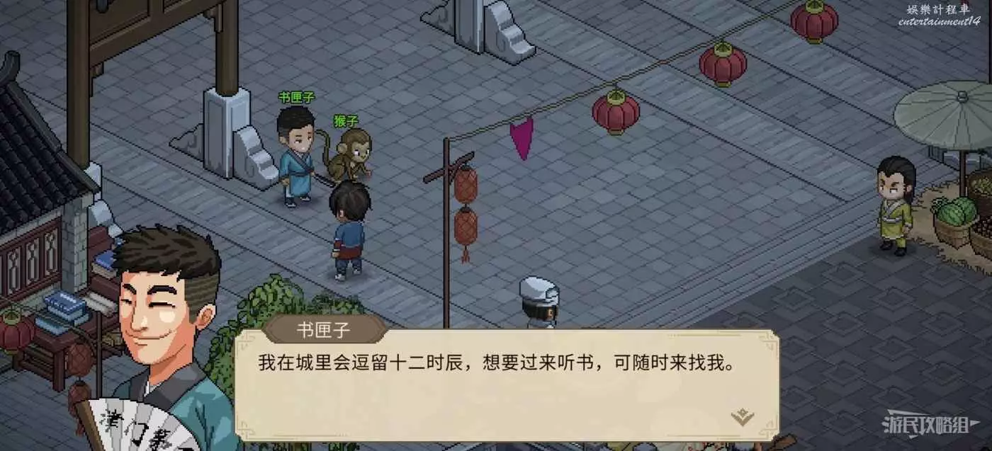 大俠立志傳 (Hero’s Adventure) 寅子彩蛋位置 21 11 月 2023-11-21 廣告 作者:瑞破受氣包 來源:遊民星空 書匣子是個帶著猴子的說書人,手持寫有津門第一字樣的扇子。出現時會自動觸發事件,玩家可以隨時前往聽書,選擇三個選項來聽不同的故事。 選擇想聽的故事之後,中途會有鬧事的人打斷,選擇不妨聽聽或閑著也是閑著都可以,先聽鬧事的人要求的故事即可。 事件結束後可以隨時來花100文聽書……但沒有書的內容,每次聽書1個時辰。書匣子只會在大樑城停留12個時辰。 除此之外還可以摸他的猴,摸一次5000文,全隊增加100點敏捷經驗。