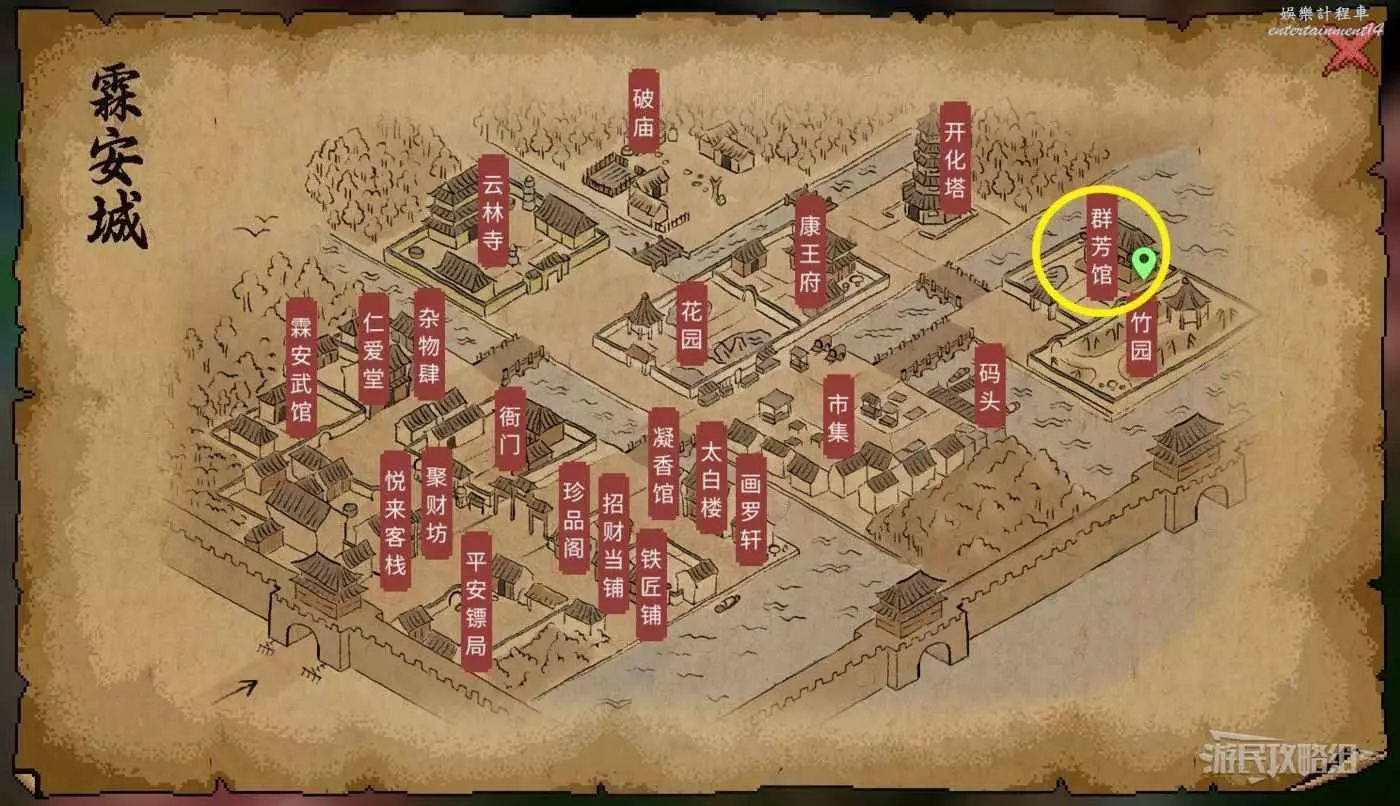 群芳館位於霖安城右上角。