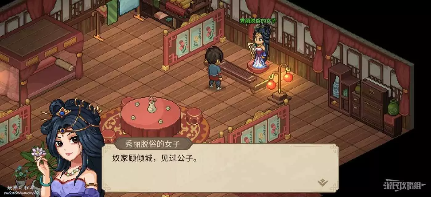 上樓之後與顧傾城對話即可觸發事件,此時音律數值高和低會觸發兩種不同的劇情,但最後的獎勵都是一樣的。