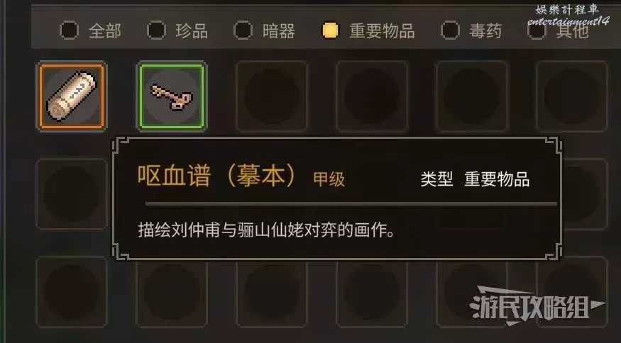 前往霖安城的珍品閣,在珍品閣內右側架子上獲得對應棋局珍中藏的物品【嘔血譜(摹本)】。