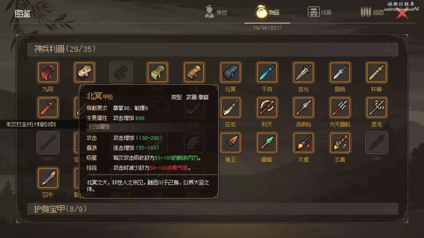 它能吸內,帶它或可不帶玉蓮花配無極洞,但我玩的是劍系,拳掌武功又太少,可以說拿了北冥就得拿草木皆兵,我感覺不是很值得,有沒有嘗試北冥配無極洞,帶玉璽能不能打頂難的邪道皇帝?不知道是否可行