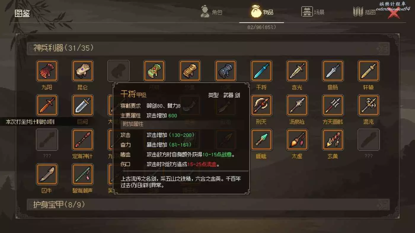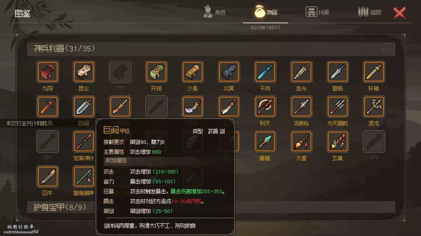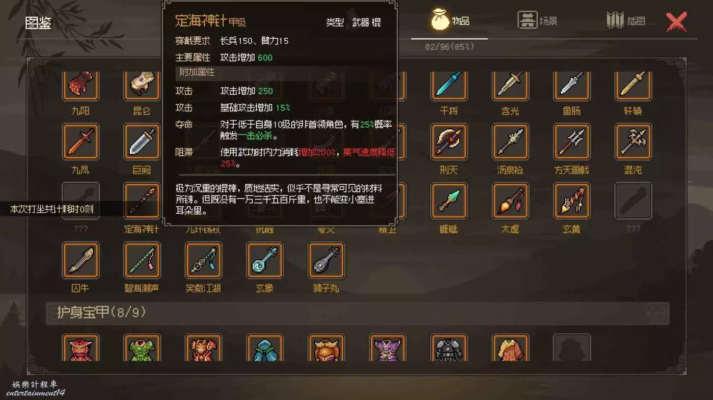 加強版長兵大石劍,唯二附帶秒殺裝備,同時也是唯一一個加15基礎攻擊的裝備,只可惜這裝備基本上和草木皆兵綁定,唉~