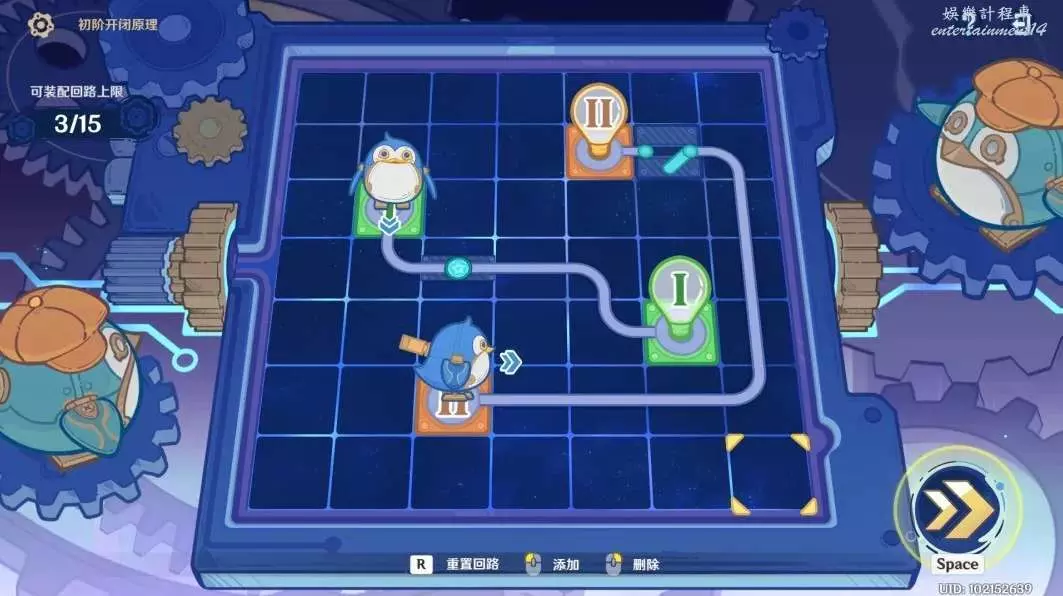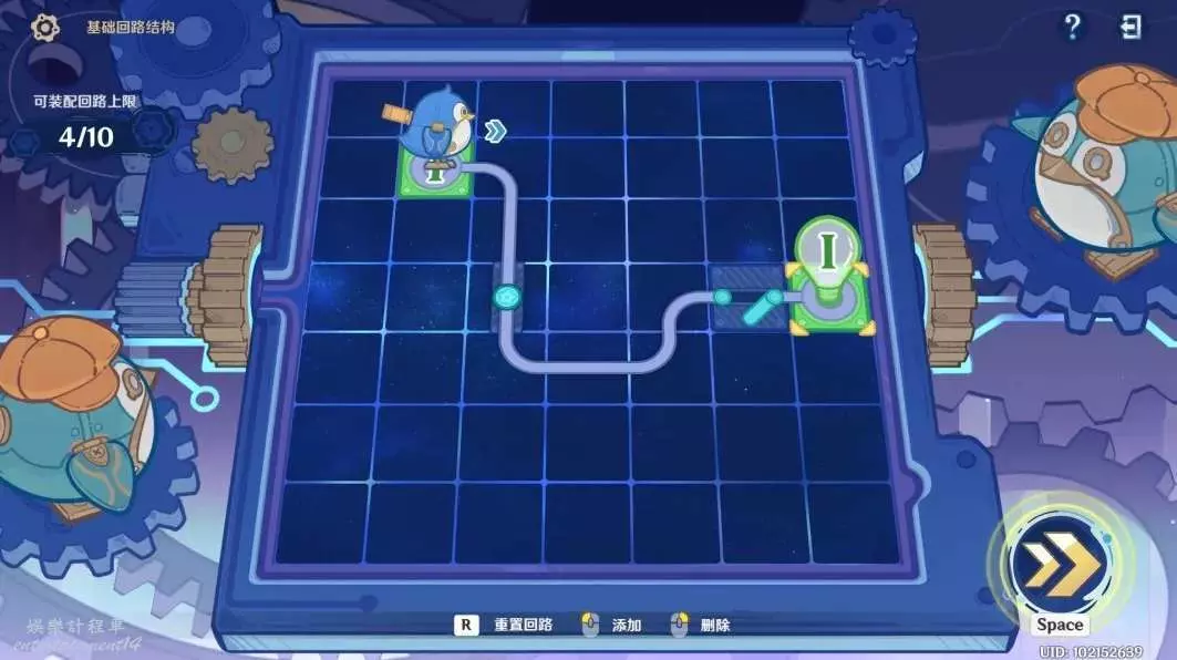 2. 「主機板調試問題集」玩法中,旅行者需要通過佈設有限長度的回路,引導信號前往信號終點以調試主機板解決問題。