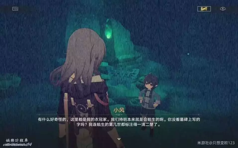 可以遇到一個畫風詭異的持明小孩,據他自己所言,這是他的衣冠塚。