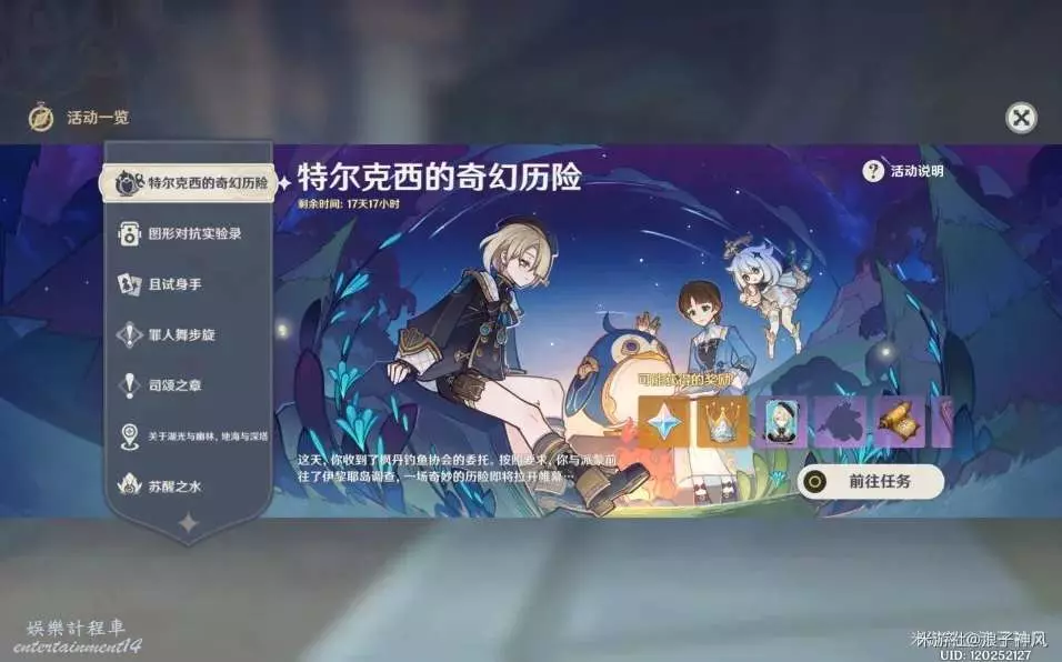 原神 (Genshin Impact) 特爾克西的奇幻歷險活動第二天攻略 24 11 月 2023-11-24 廣告 作者:浪子神風 來源:米遊社 一、「主機板調試問題集」III、IV 操作方法如圖:按照我的線路,分別從起點連接到終點即可,然後點擊下面的行動即可完成。 第4關如圖完成連接即可,點擊行動完成任務。 二、「參尋榮耀追遊錄」二 吹響海螺,即可標記出需要採集的三個物品標記。獲取異色水母的炸彈能力,一會有用。 三個收集的物品:跟著閃光的提示進行即可,其中一個需要用炸彈能力炸開藍色巨石。 今天的活動,依然非常的簡單啊,小夥伴們快去完成你的任務領取獎勵吧。