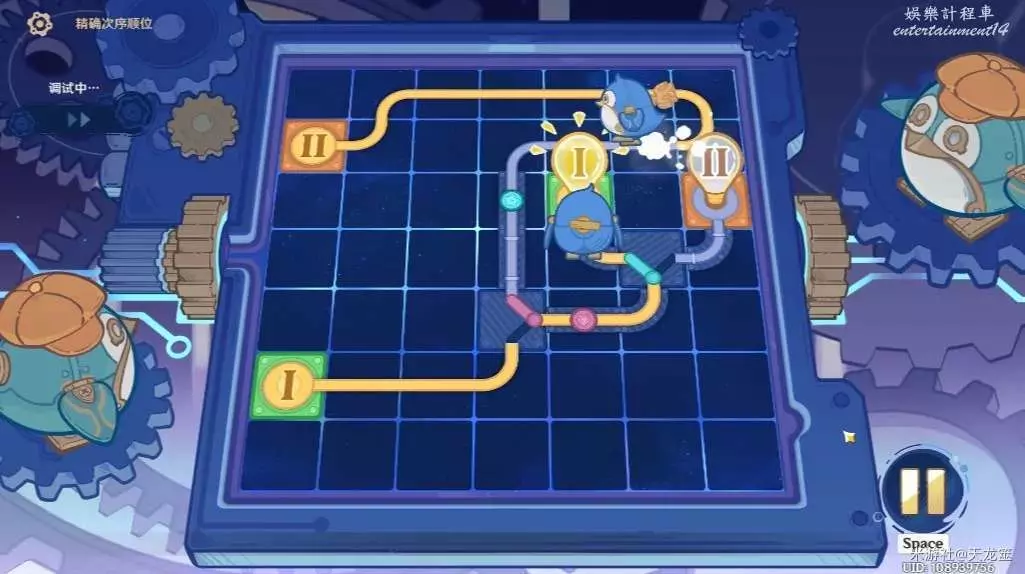 我們將下方連接後,上方的企鵝需要繞一圈路,等下方過了通路後再經過機關,即可完成挑戰。