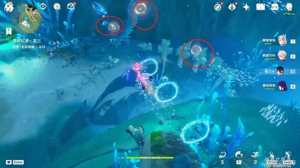 然後水環終點和右側的發光點都是摩拉,一個1萬一個5000。