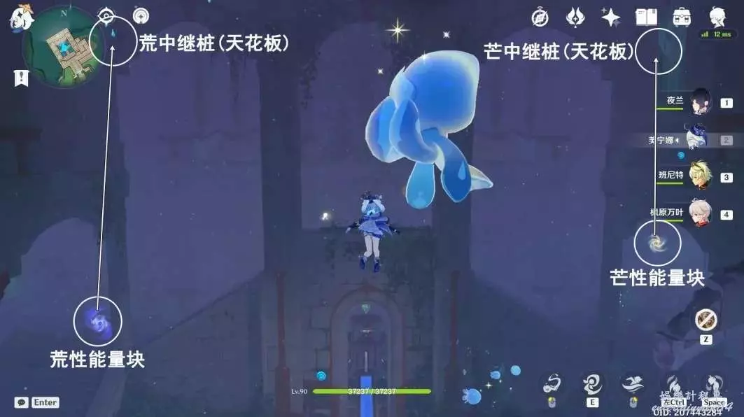 2.切換琳妮特,攻擊芒中繼樁(天花板上);