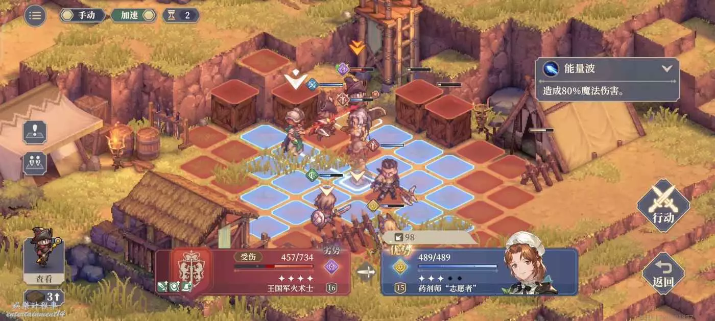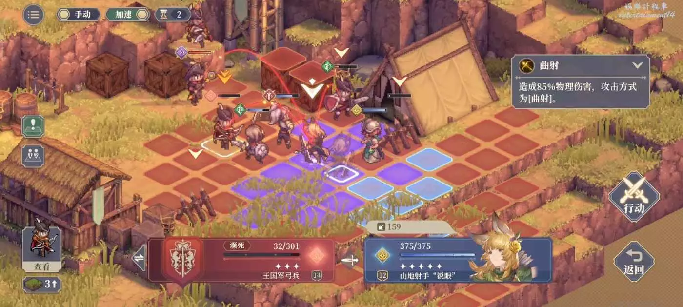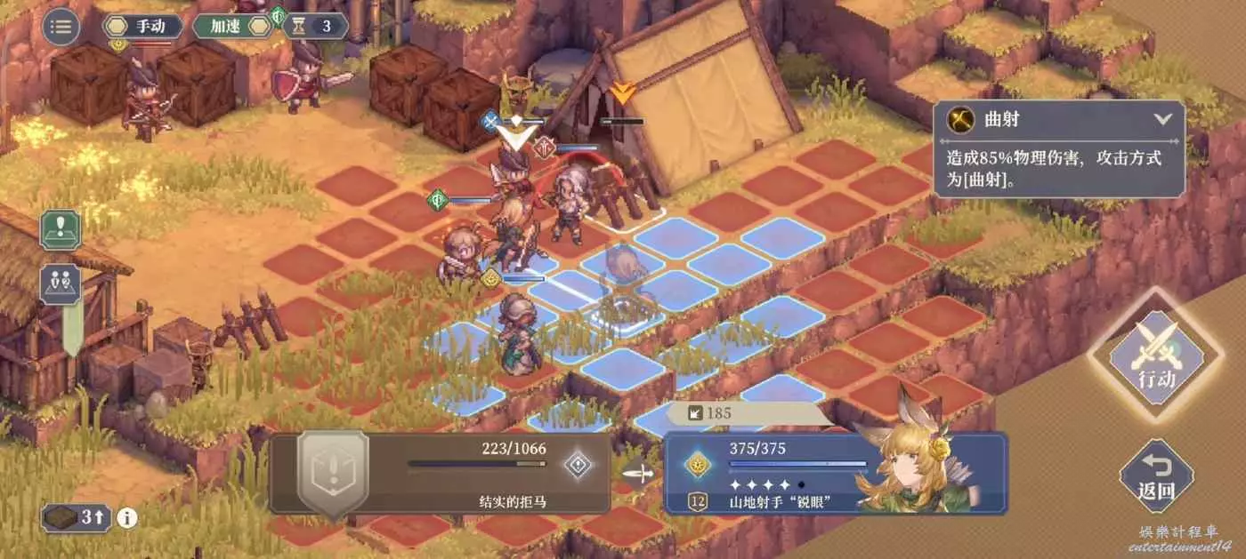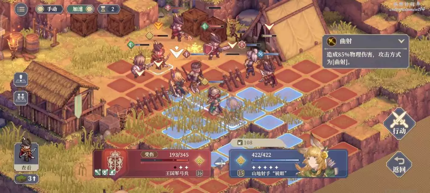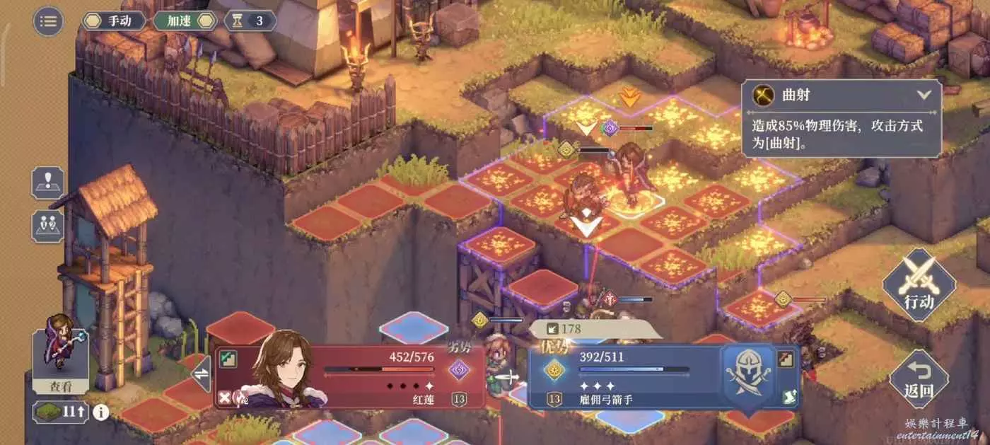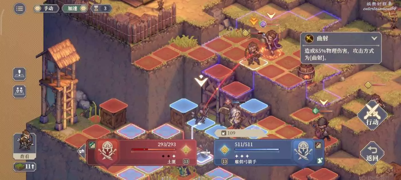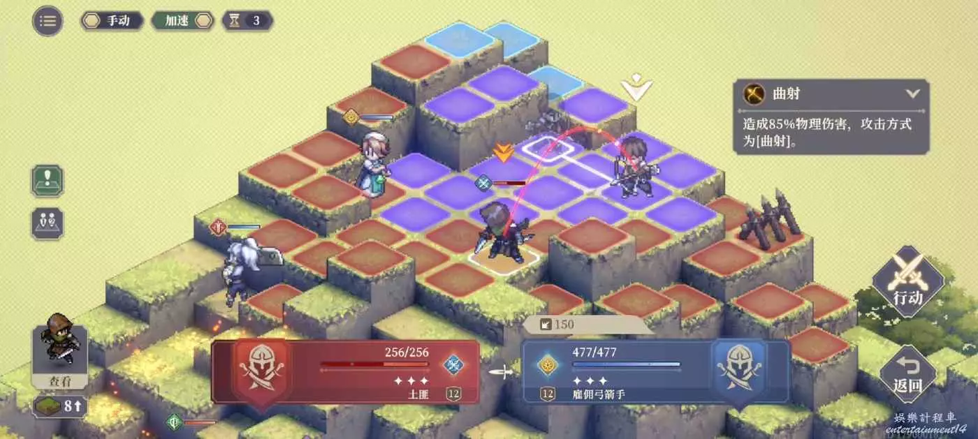 雇傭弓箭手:敵人行動後,施放【普攻】攻擊距離最近的敵人。之後回合一直原地待機即可。