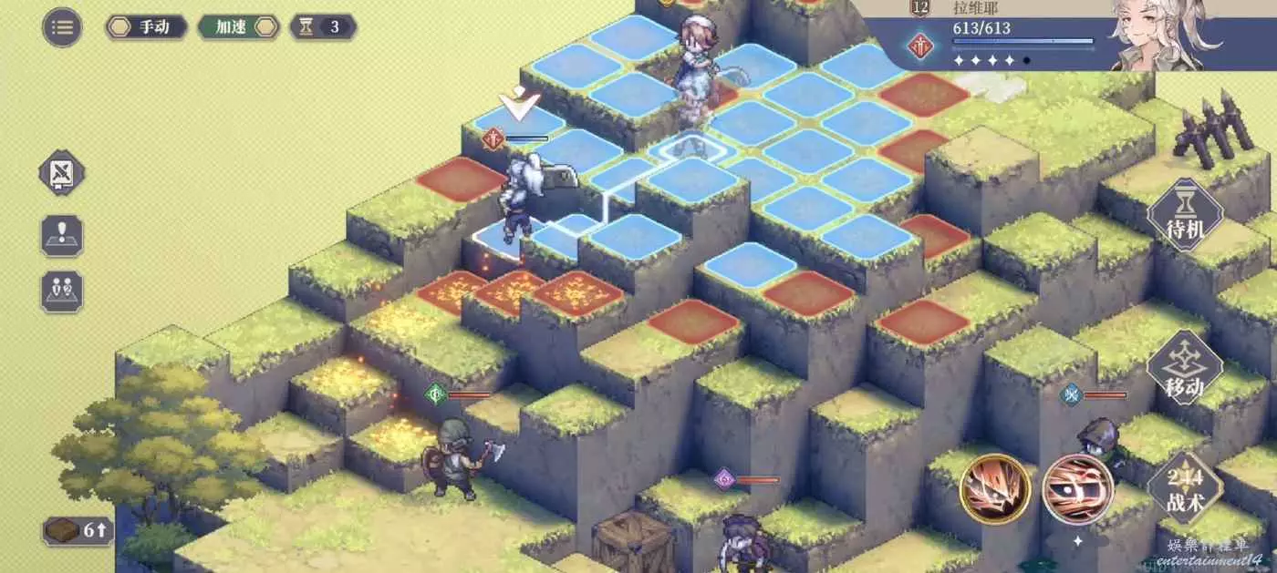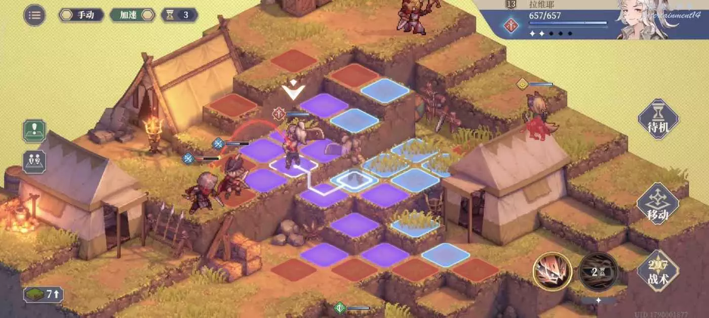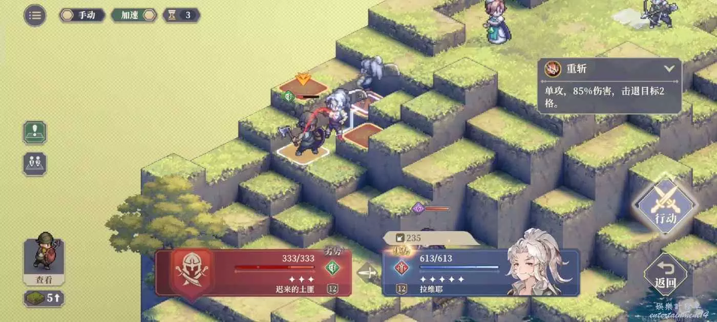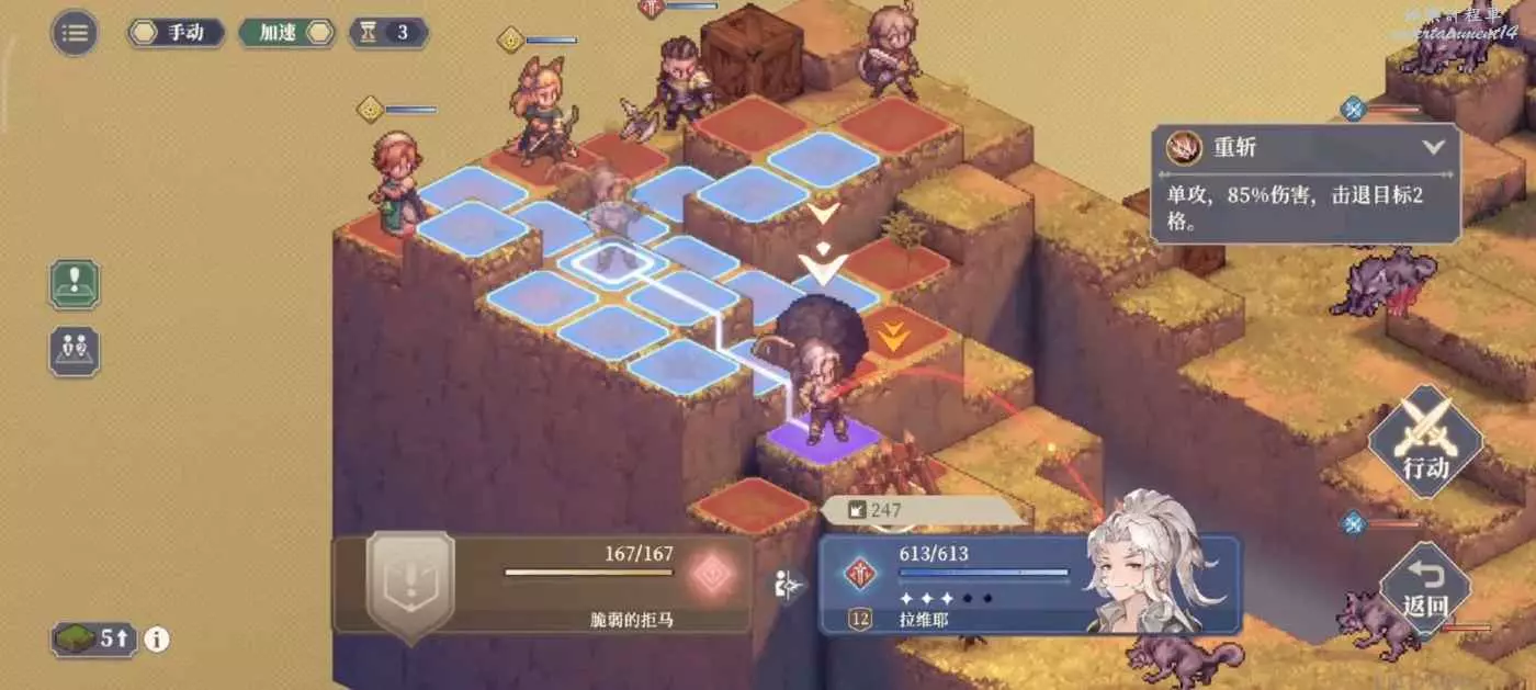 拉維耶:施放【普攻】攻擊距離最近的敵人。目標被擊敗。之後回合一直原地待機即可。