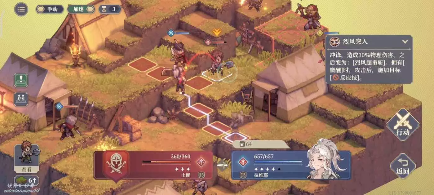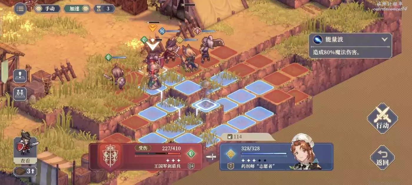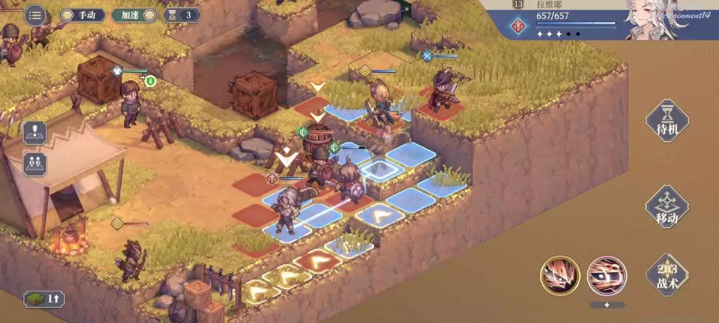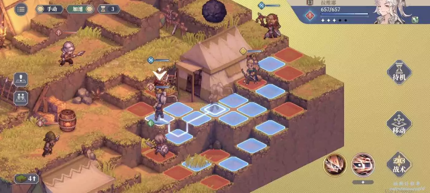 拉維耶:施放【普攻】攻擊距離最近的敵人。目標被擊敗。之後回合一直原地待機即可。