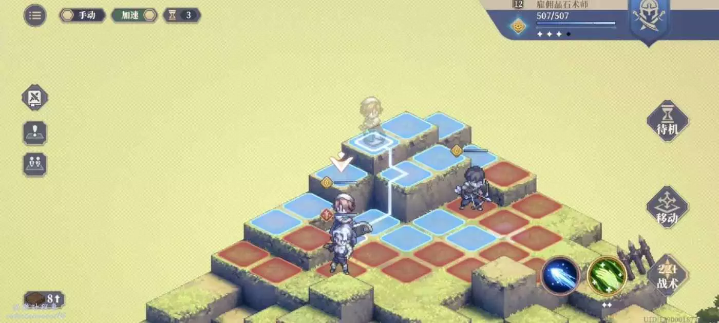 雇傭晶石術師:施放【普攻】補刀距離最近的敵人。目標被擊敗。之後回合一直原地待機即可。