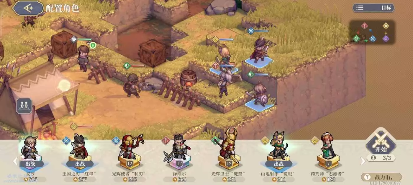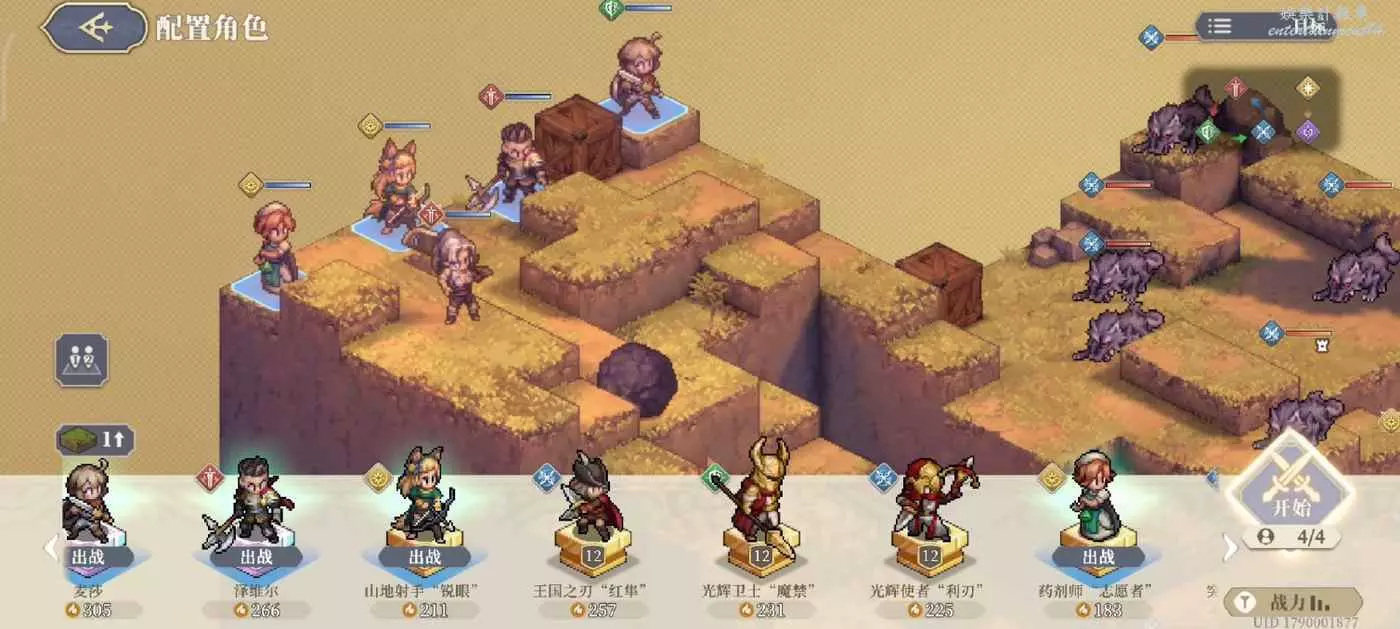 本關敵人全是突襲者,而且地形比較狹窄。建議多用可以攻擊2格以上距離的角色,並搭配治療角色。筆者本關上陣的治療角色是藥劑師。