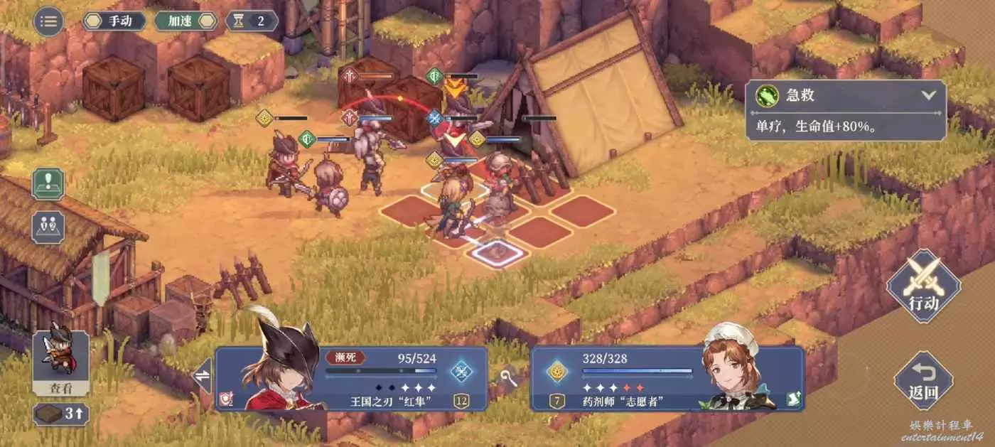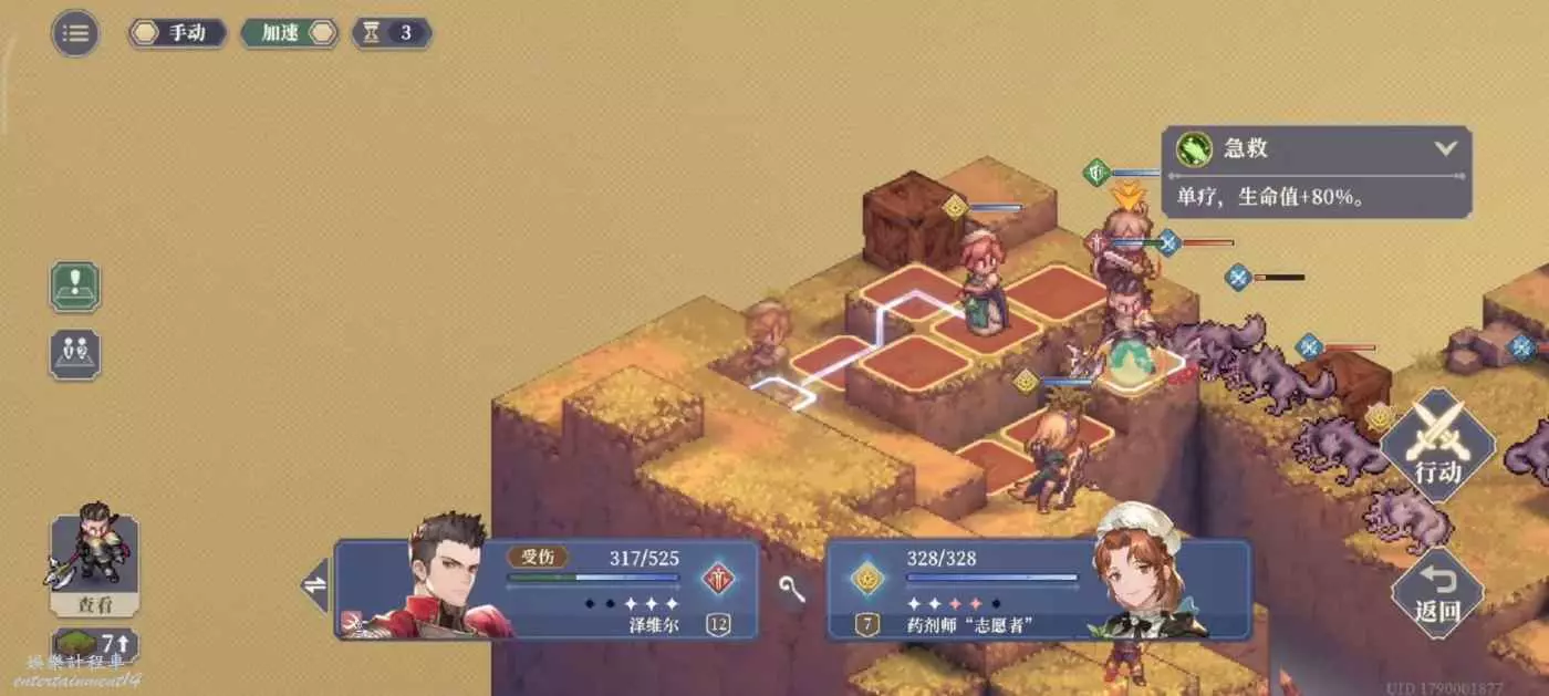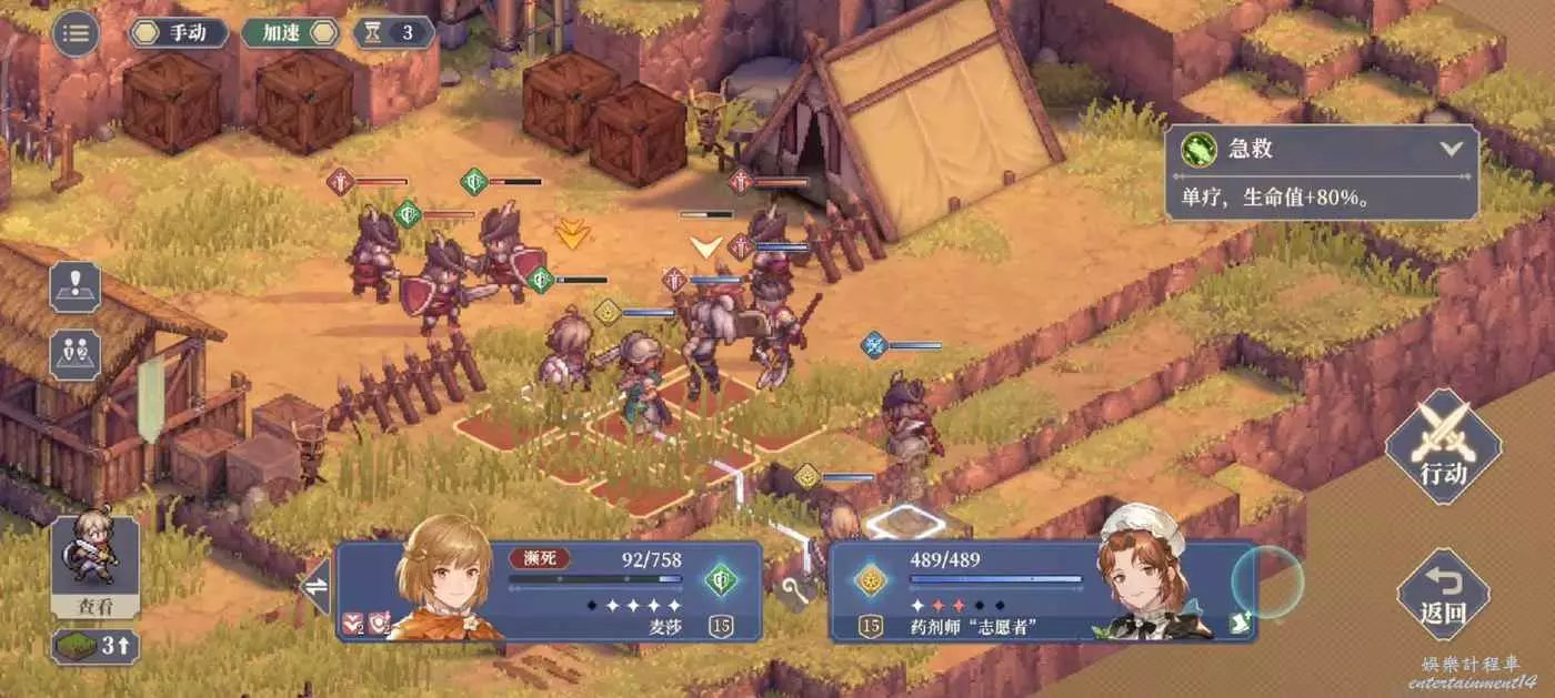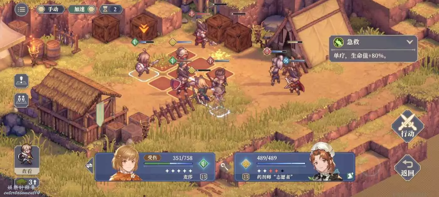 藥劑師:敵人行動後,施放【急救】為麥莎恢復生命值。