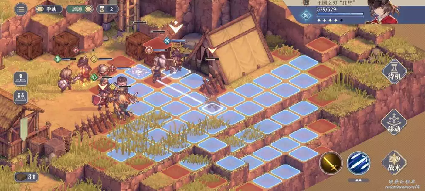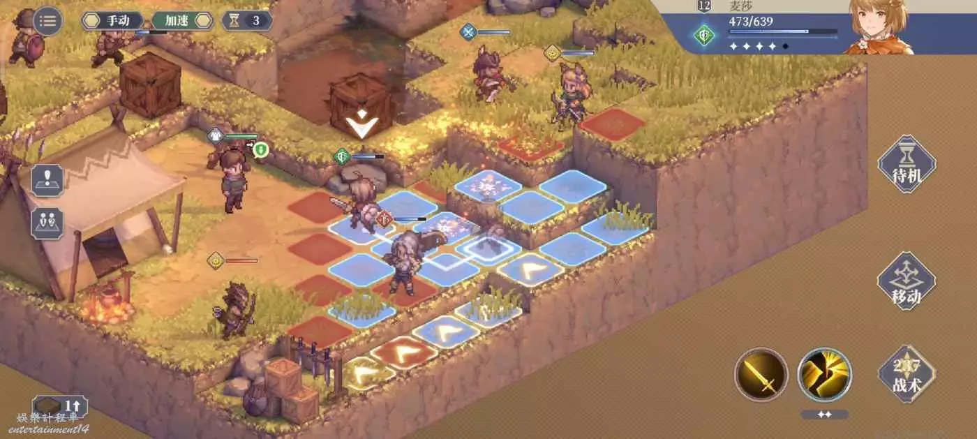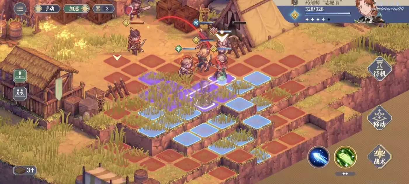 本關為準備技能的教學關卡,陣容由系統提供。敵方紅蓮施放技能需要1回合準備時間,準備技能時格子會顯示技能的施放範圍,注意避讓。