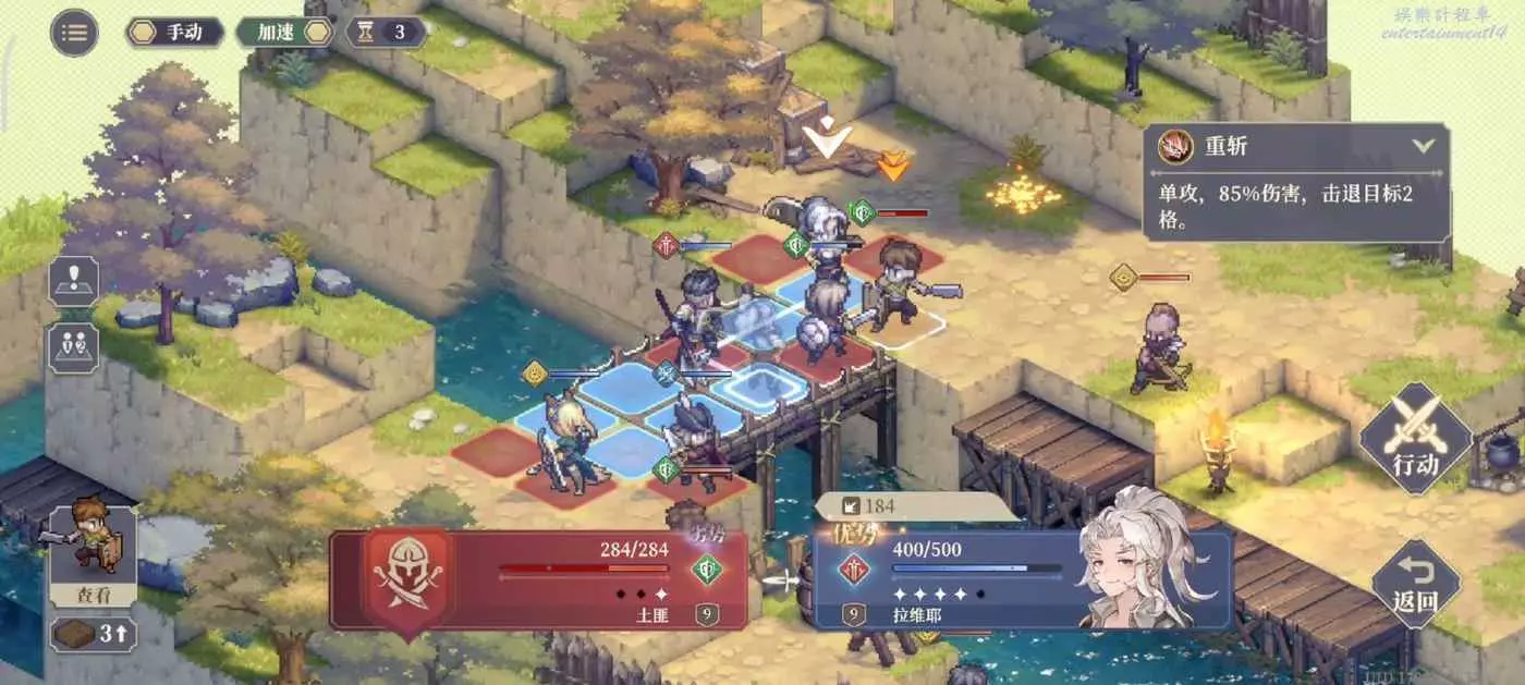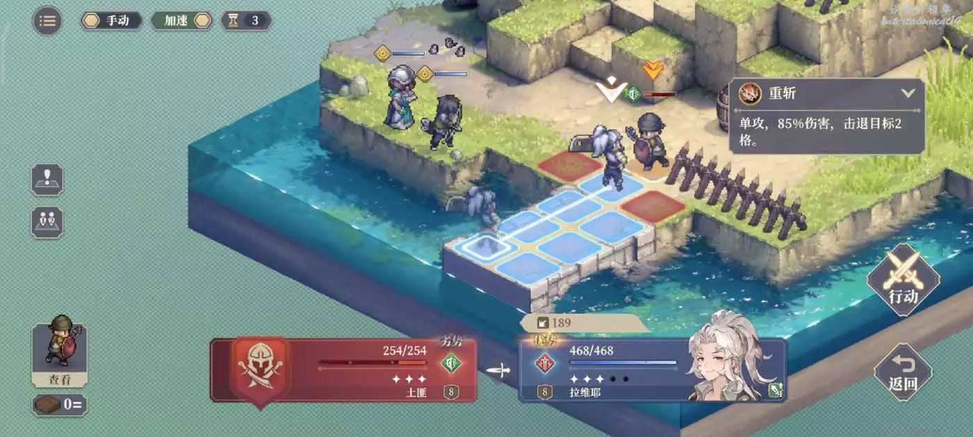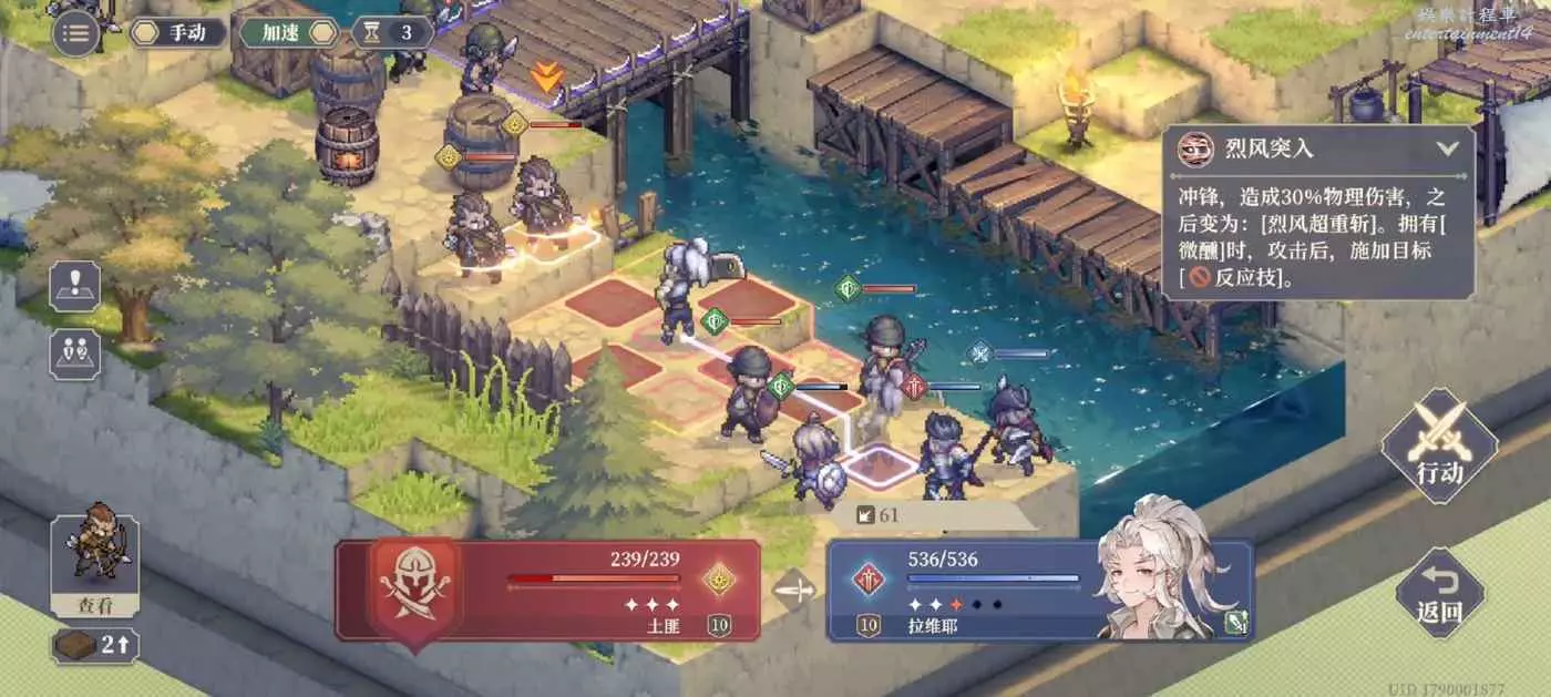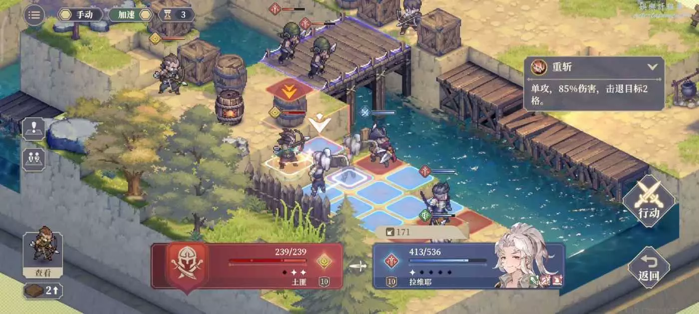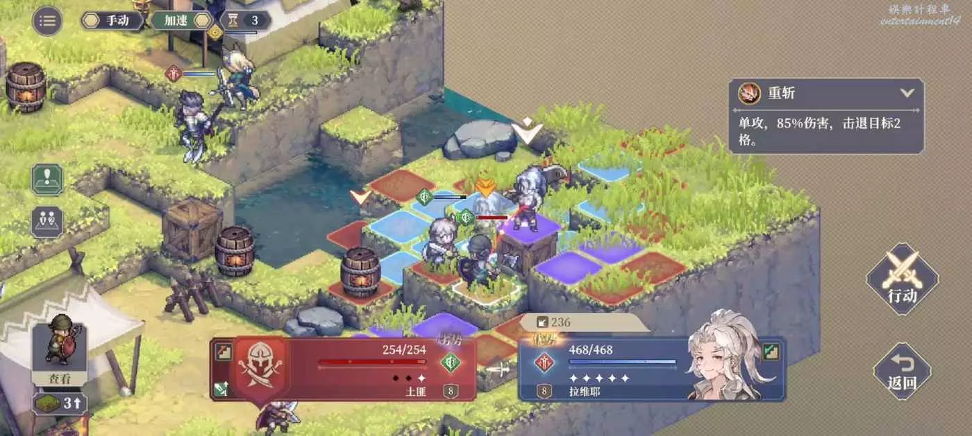 本關起拉維耶將加入戰鬥。拉維耶的普攻可以擊退敵人,自帶技能可以突進2格,衍生技能可施放高傷害攻擊,注意靈活使用。