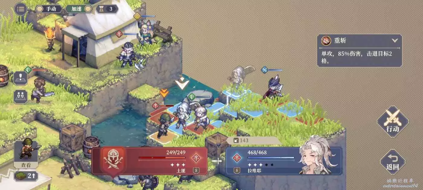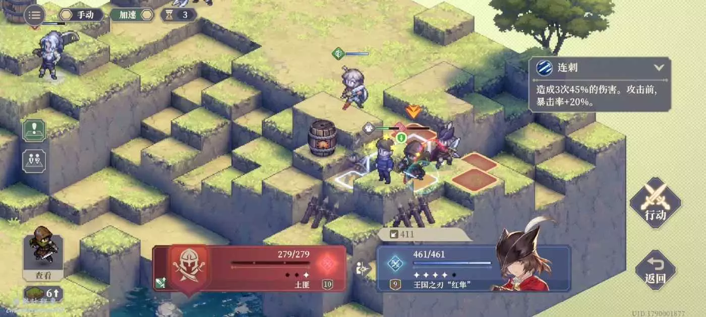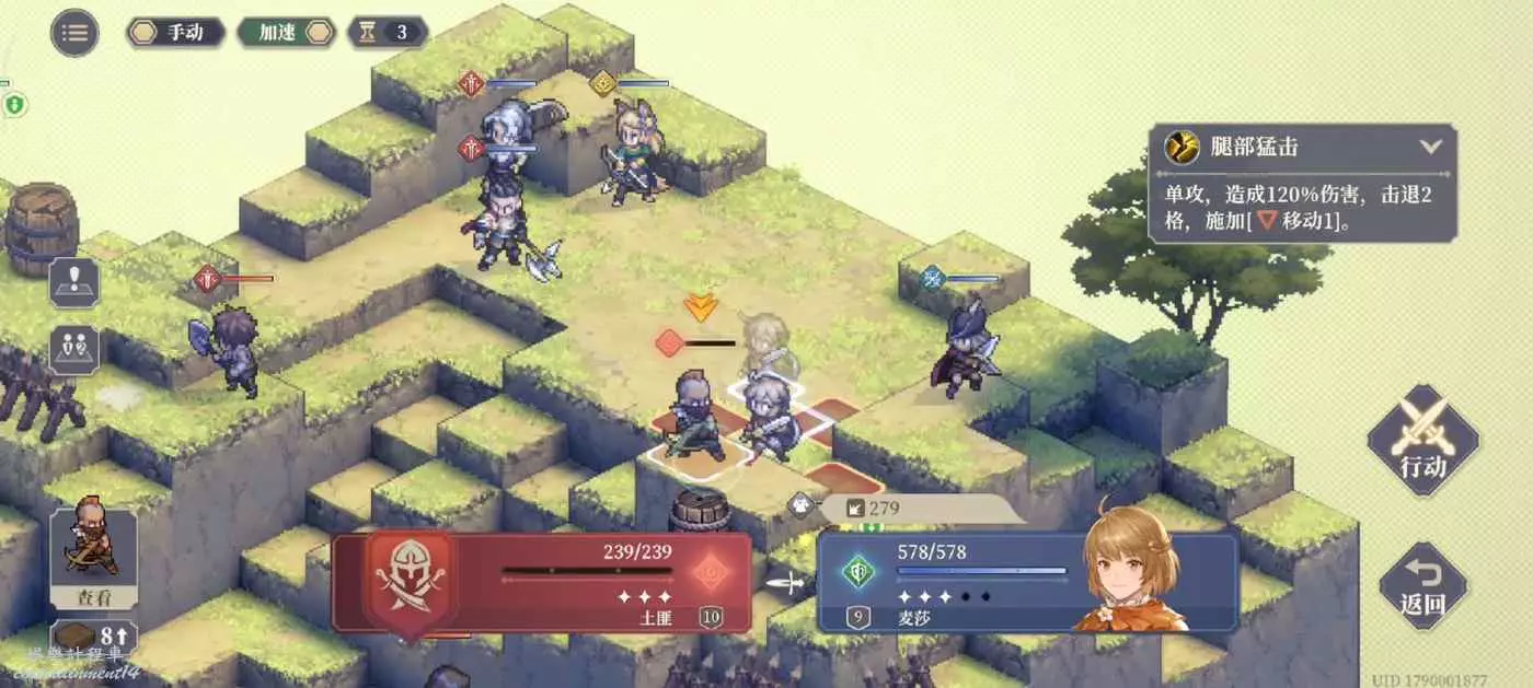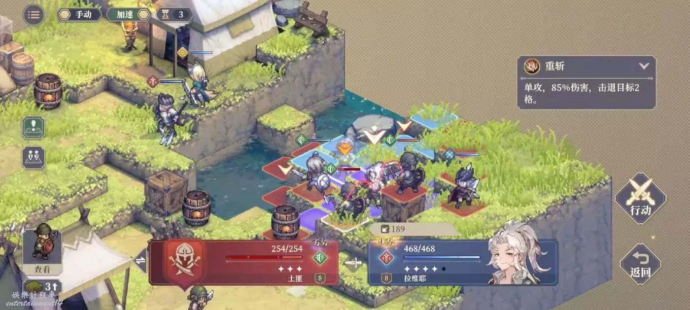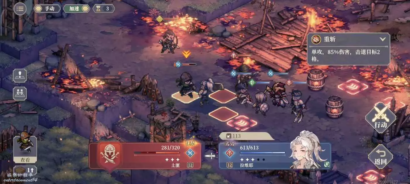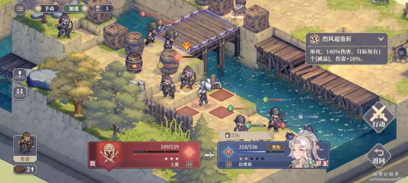 本關起拉維耶將加入戰鬥。拉維耶的普攻可以擊退敵人,自帶技能可以突進2格,衍生技能可施放高傷害攻擊,注意靈活使用。