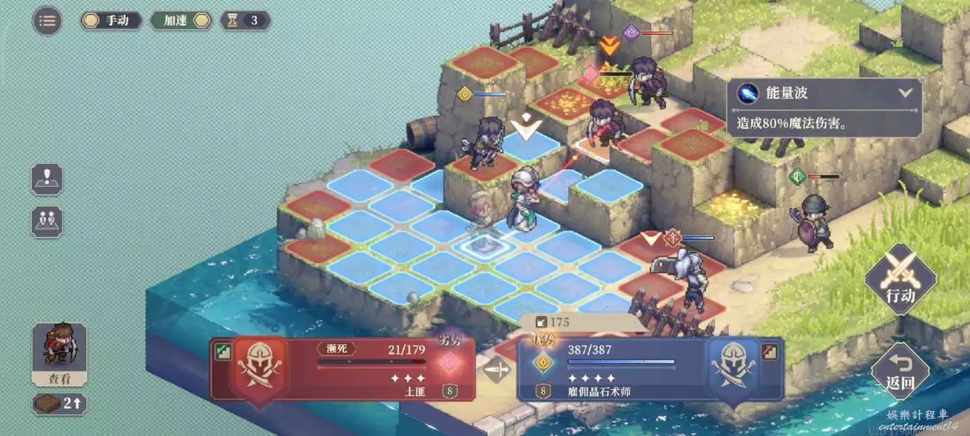 雇傭晶石術師:施放【普攻】補刀雇傭弓箭手攻擊的敵人。目標被擊敗。