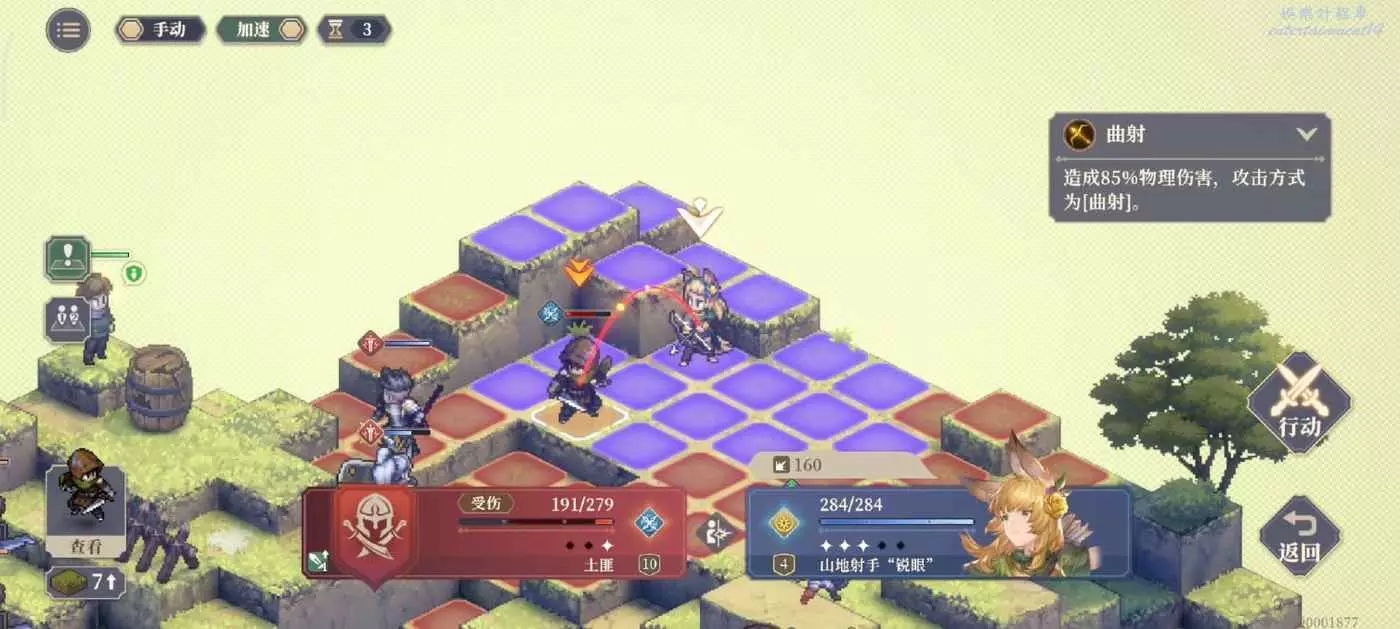 雇傭弓箭手:敵人行動後,施放【普攻】攻擊最近的敵人。目標被擊敗,戰鬥結束。