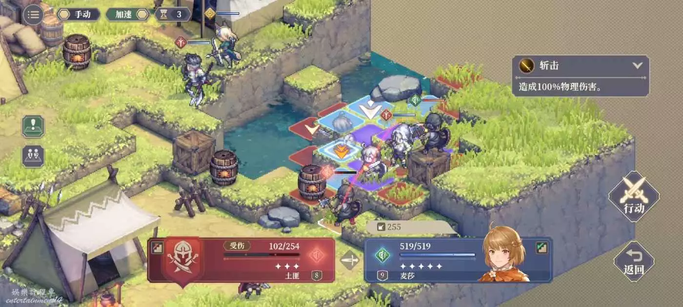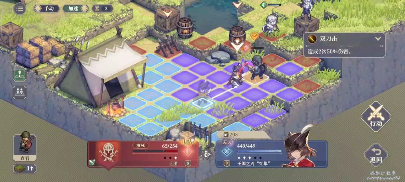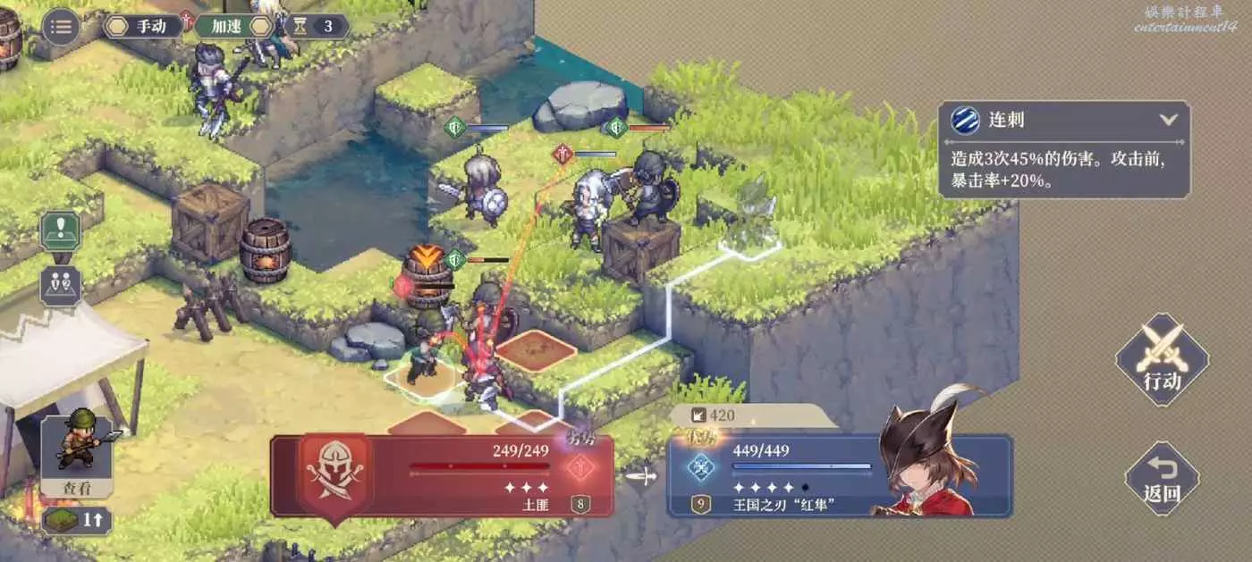 筆者本關上陣利刃,利刃是一名史詩級近戰突襲者,移動力較高。沒有利刃的話,用其他突襲者也一樣。