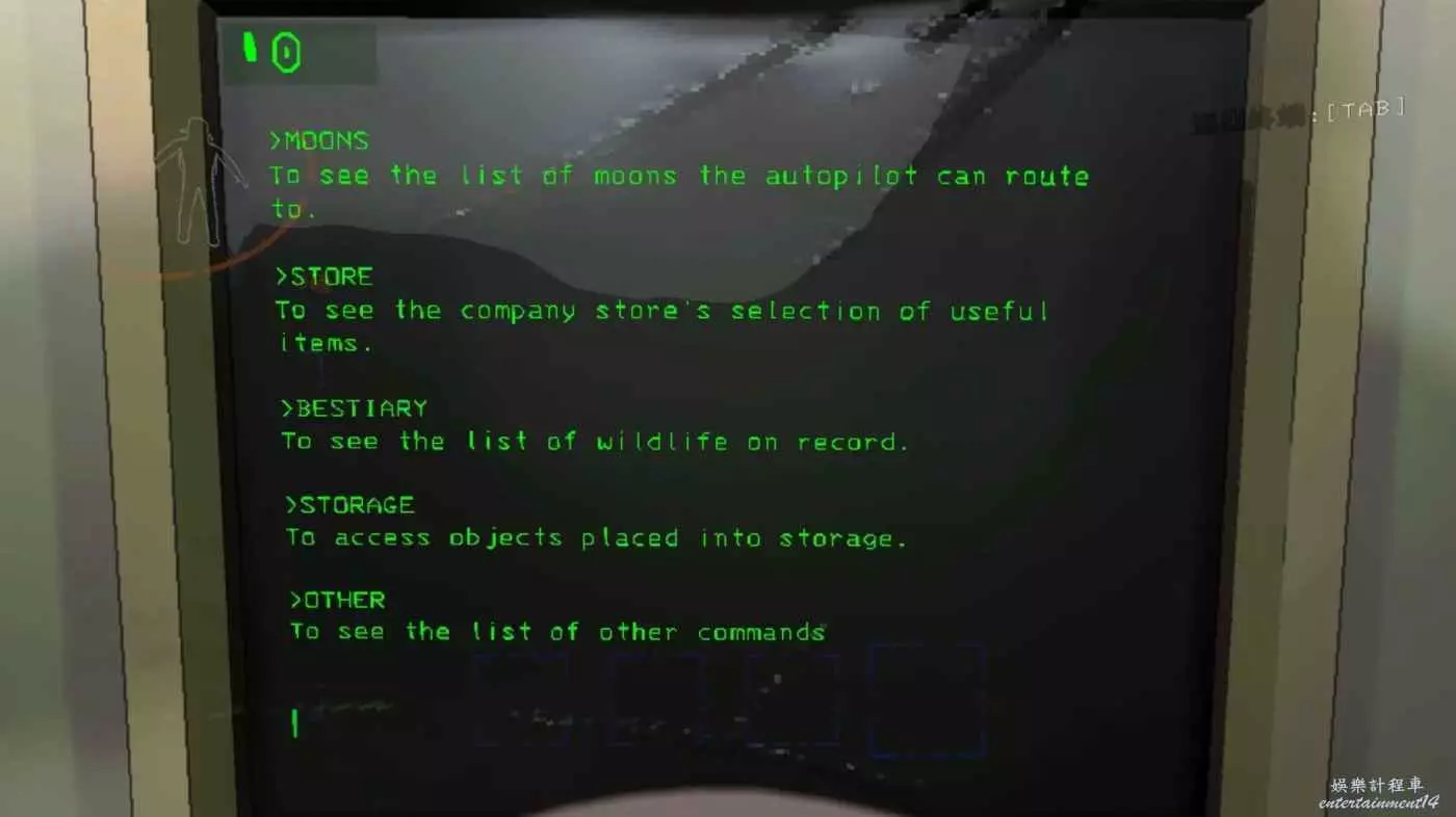 BESTIARY(輸入後打開生物指南,可查詢已發現的相關生物資訊)