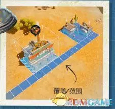 你可以在建造時看到藍色的覆蓋範圍,只有這個範圍內的建築才能享受到服務。