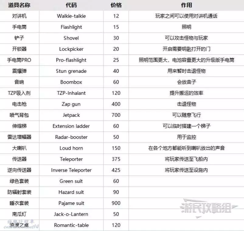 探索必備品為:手電筒(照明)、對講機(玩家之間對話)、鏟子(擊殺怪物)。