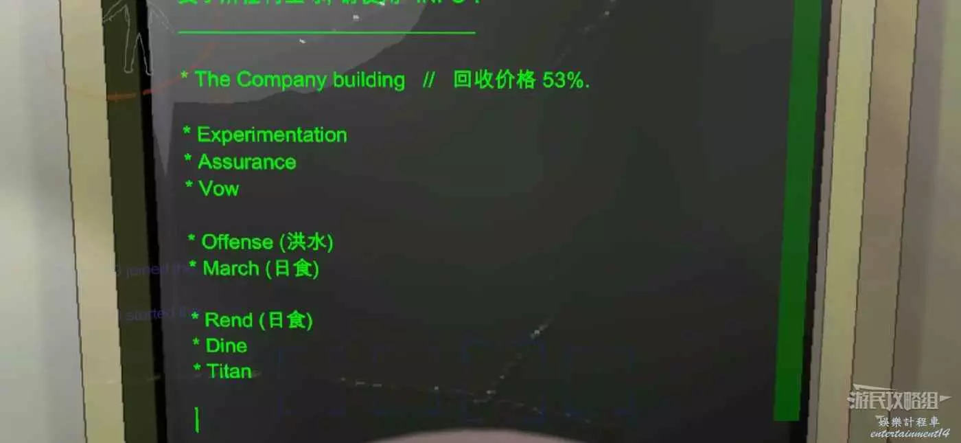 流程為選擇地圖,購買物品,進入設施,拾取值錢物品,將物品放置在飛船中,在終端機的地圖頁面輸入公司代碼THE Company building進入公司,將拾取物品賣出完成配額目標。