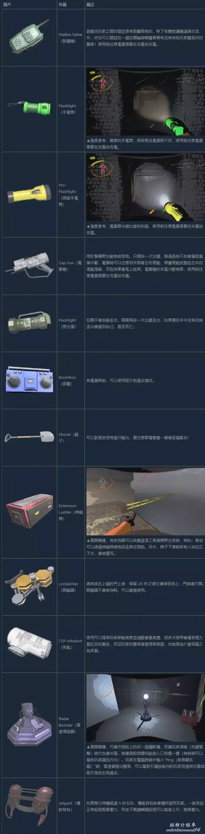 Inverse Teleporter(反向傳送器)購買反向傳送器可將玩家從飛船傳送到設施內。但是在反向傳送時,玩家將失去目前持有的所有物品,意思大家會摸黑在設施裡面像個小女孩一樣喊叫。