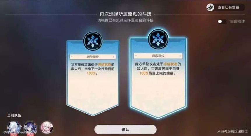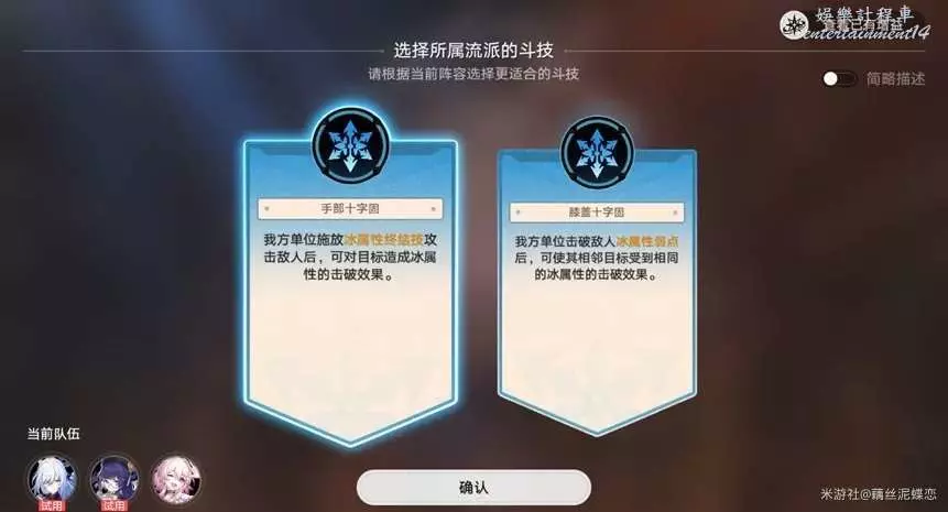 第一輪的話,凍結狀態下的敵人不一定要讓鏡流來打,適用的佩拉觸發buff傷害也很高的。然後二選一增益buff,我們選手部十字固。