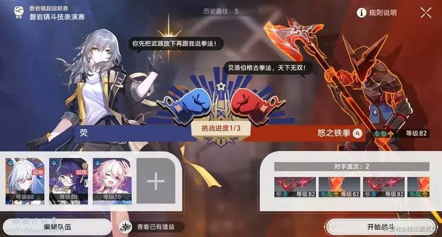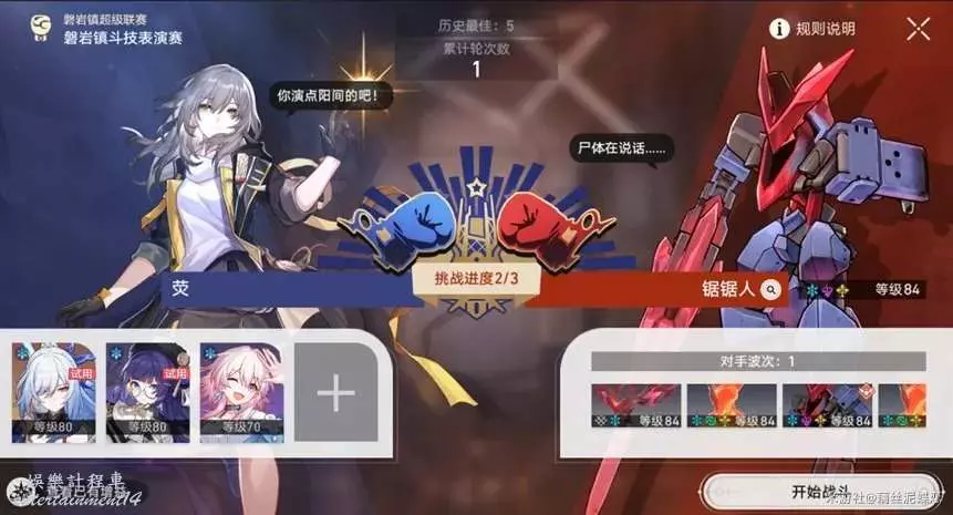 這裡我帶了一個三月七,提高一下容錯率,關鍵時候還可以補個凍結,三月七遺器建議帶個速度鞋和充能繩。這裡對手波次為兩波,所以我們必須要在一輪內解決1波。