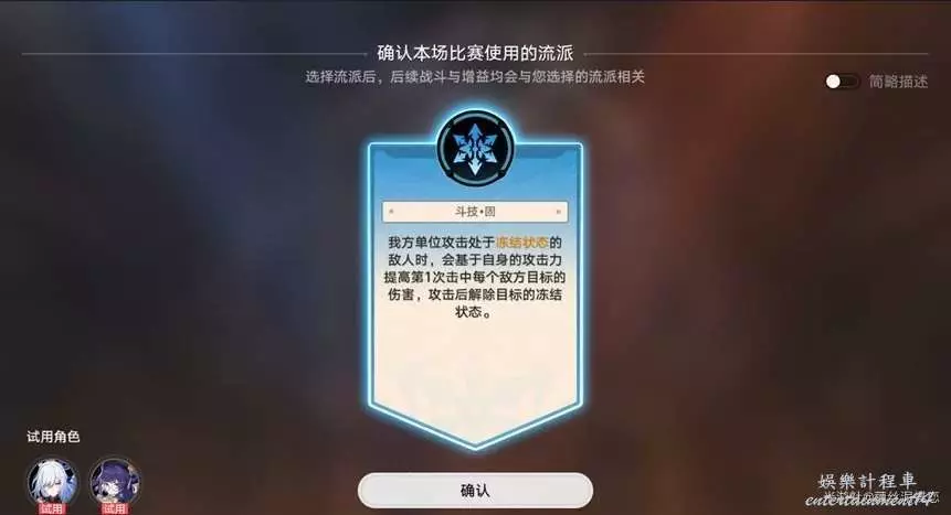 在鬥技表演賽中,開拓者選擇參加賽事後,會獲得當前流派的核心鬥技,擊敗對手後可以在當前流派的兩個增強鬥技中選擇一個。