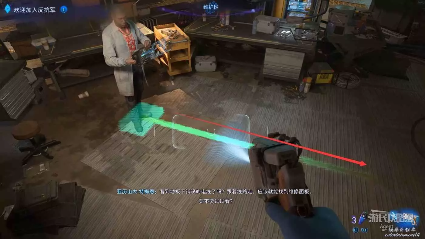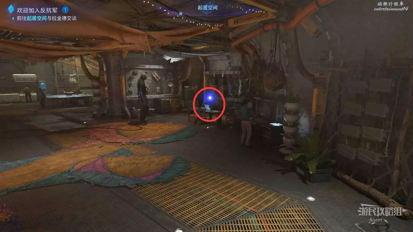 進入反抗軍總部,到左邊的指揮中心與阿爾瑪和泰蘭交談。然後泰蘭會帶著你逛逛。