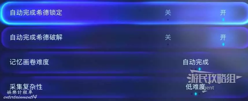 如果覺得希德的操作麻煩,可以在設置裡改成自動完成。包括記憶畫卷、採集都可以改成自動完成。